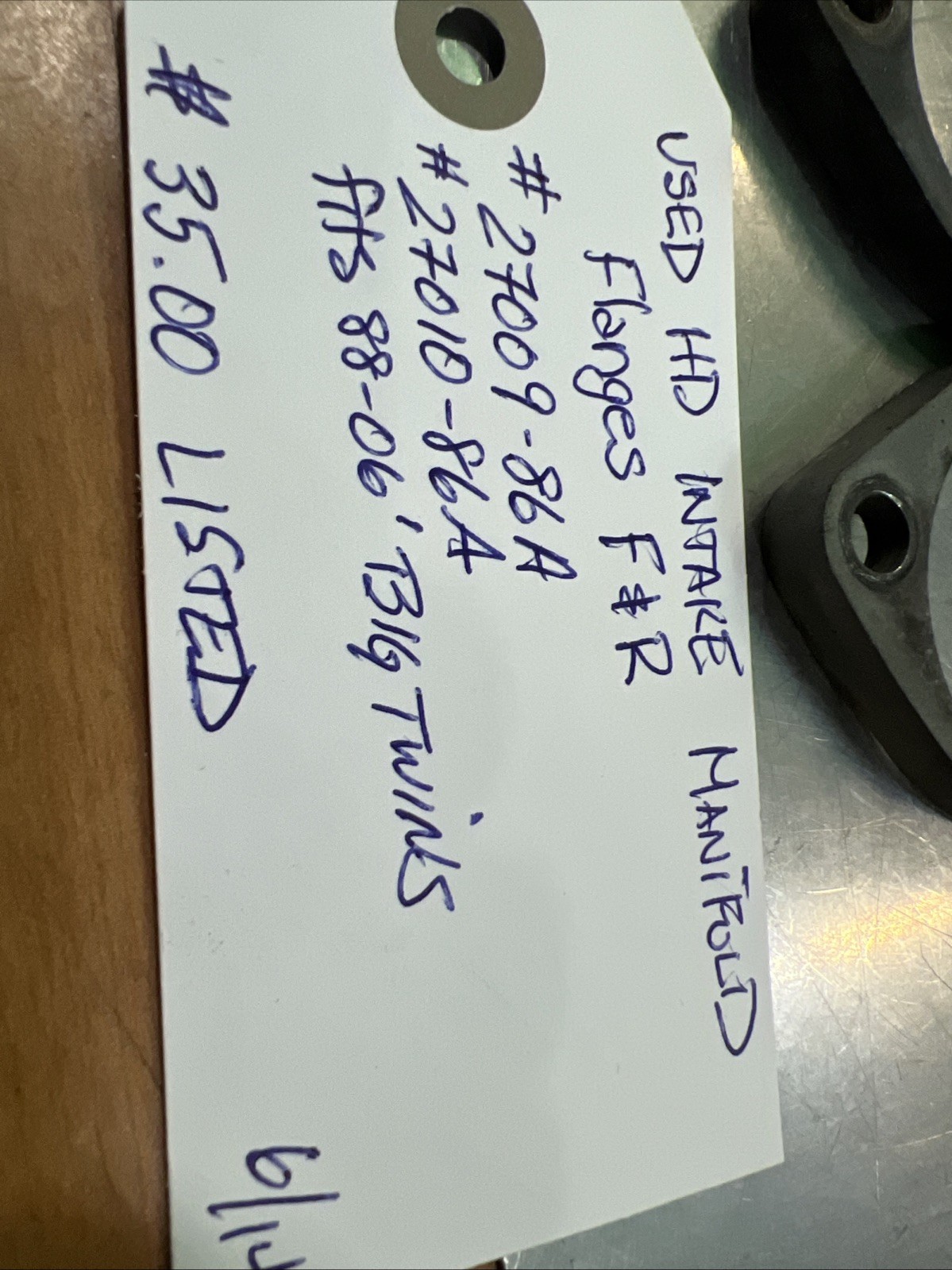 Harley Davidson Intake Manifold Flanges F&R #27009-86A/27010-86A. Condition is used. Fits 88-06’ Big Twins buyer is responsible for fitment and applications