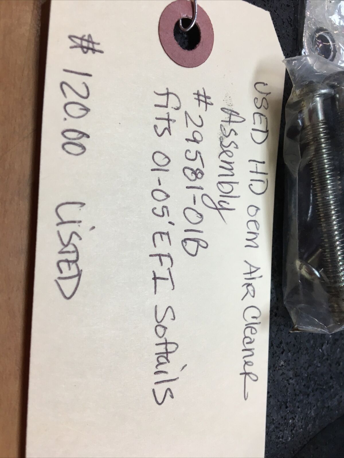 Harley Davidson oem Air Cleaner Assembly #29581-01B. Condition is used. No filter. Fits 01-05’ EFI Softails buyer is responsible for fitment and applications