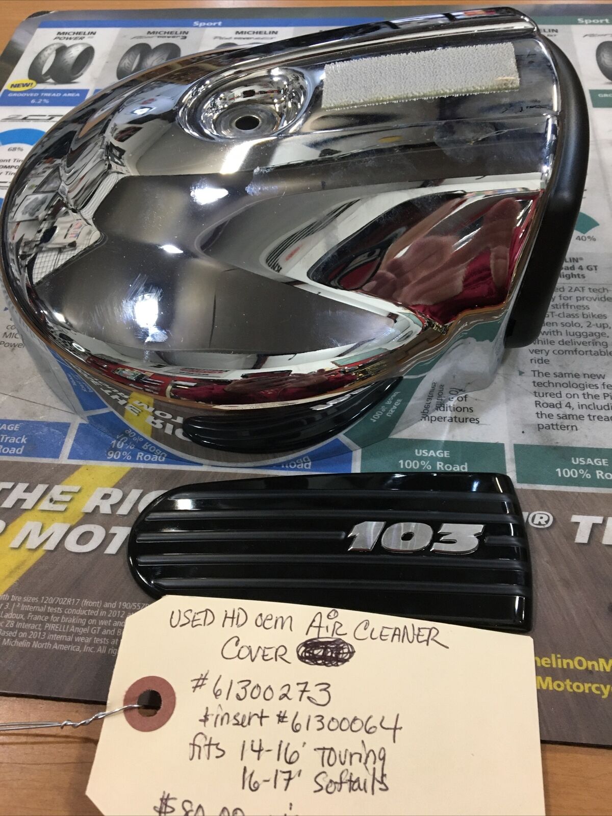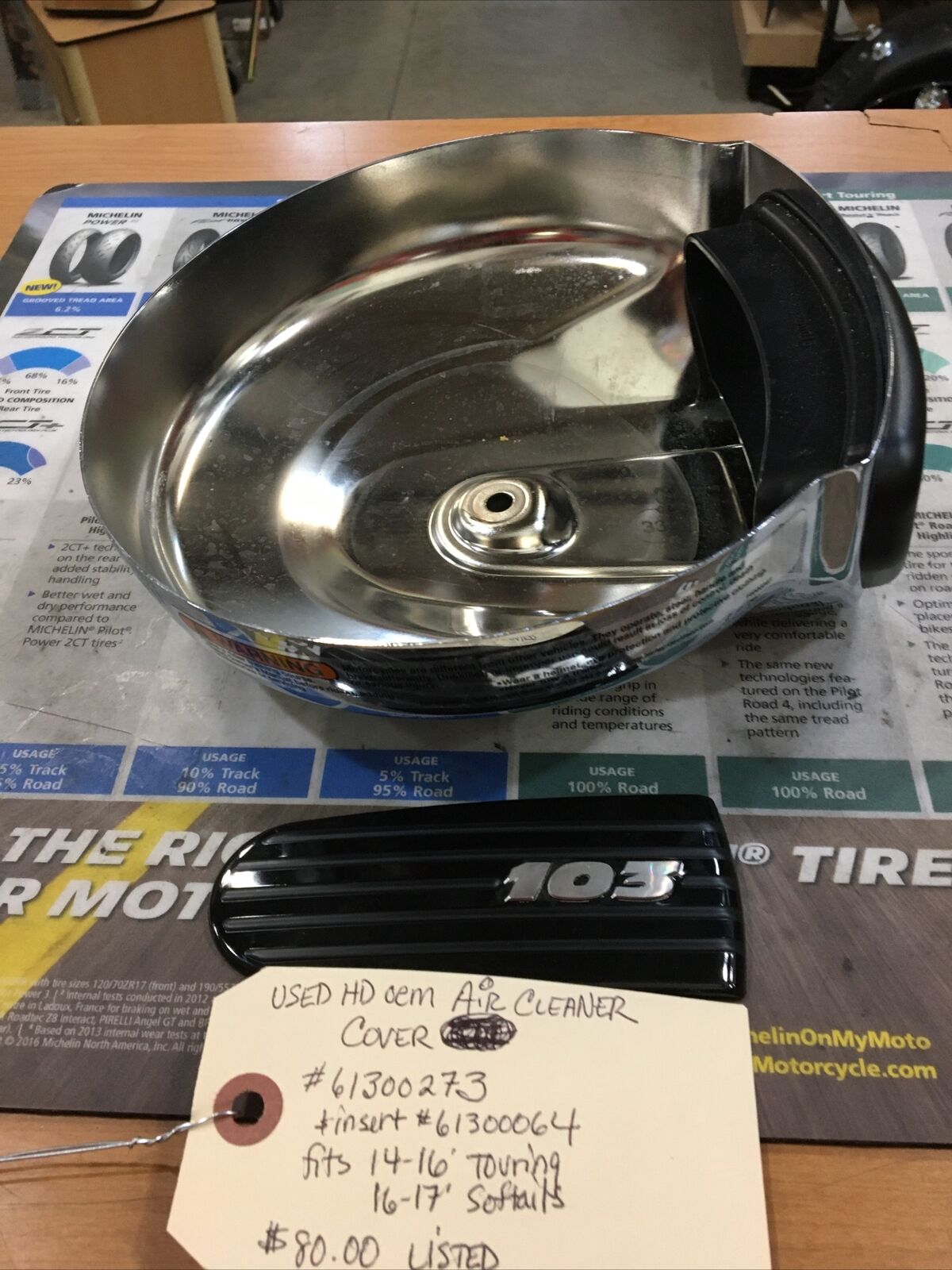 Harley Davidson oem Air Cleaner Cover #61300273. Condition is Used. Has insert too. Fits 14-16’ Touring and 16-17’ Softails buyer is responsible for fitment and applications