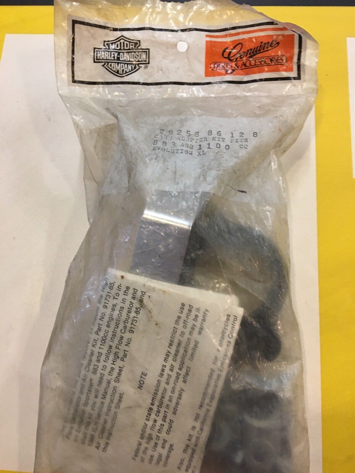 HD Carburetor Adapter Kit #29258-86. Condition is New.obsolete item fits XL883/1100 evolution allows you to mount Hi flow carburetor and air cleaner kit #91731-85