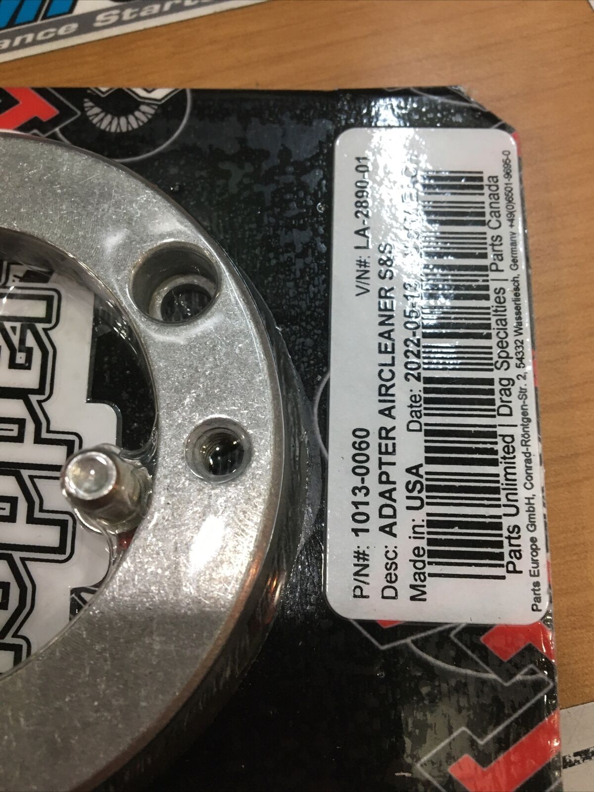 LA Choppers S&S Air Cleaner Adapter #1013-0060. Condition is new. Condition is new. Will also work for mounting other air cleaner kits designed to mount CV carburetors; not for use with Arlen Ness Big Sucker Air Cleaners buyer is responsible for fitment and applications