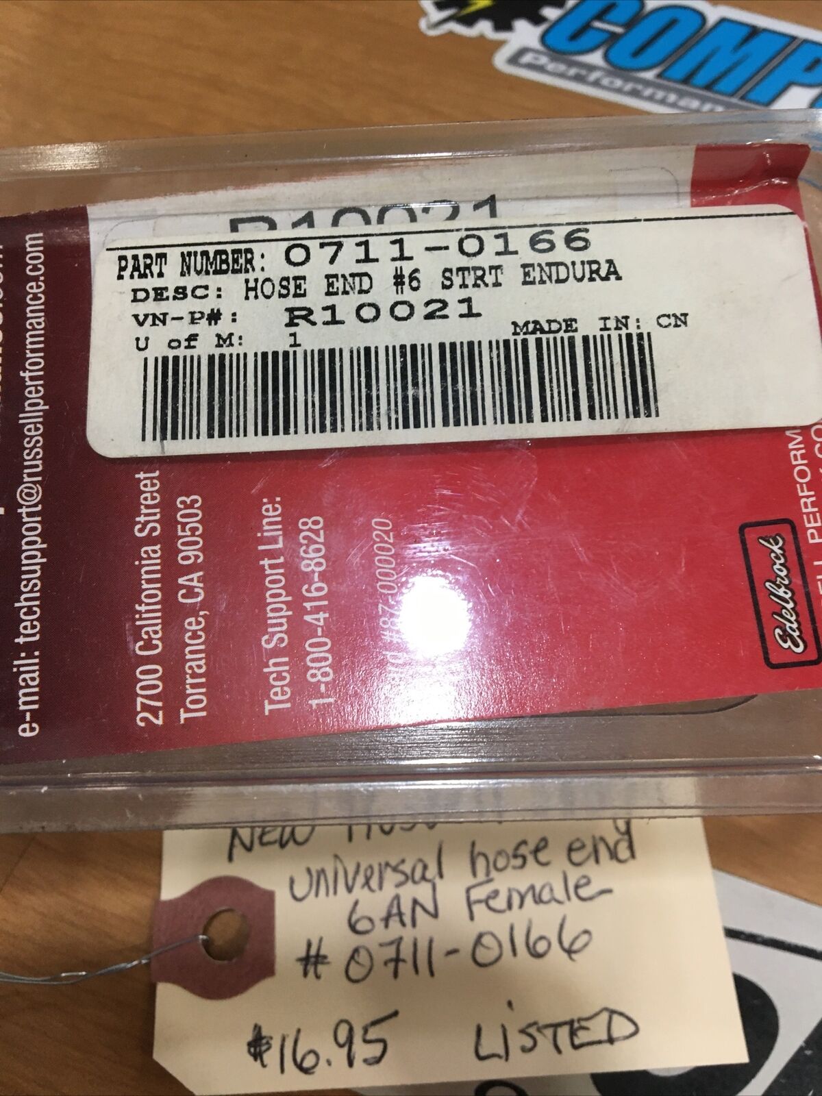 Russell straight universal hose end 6AN female #0711-0166.