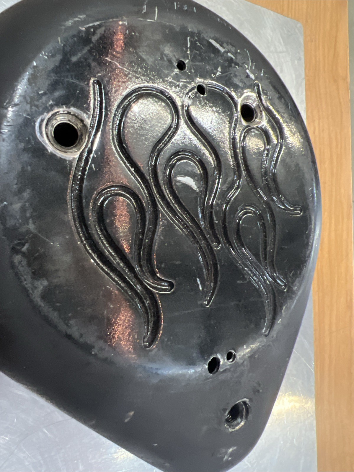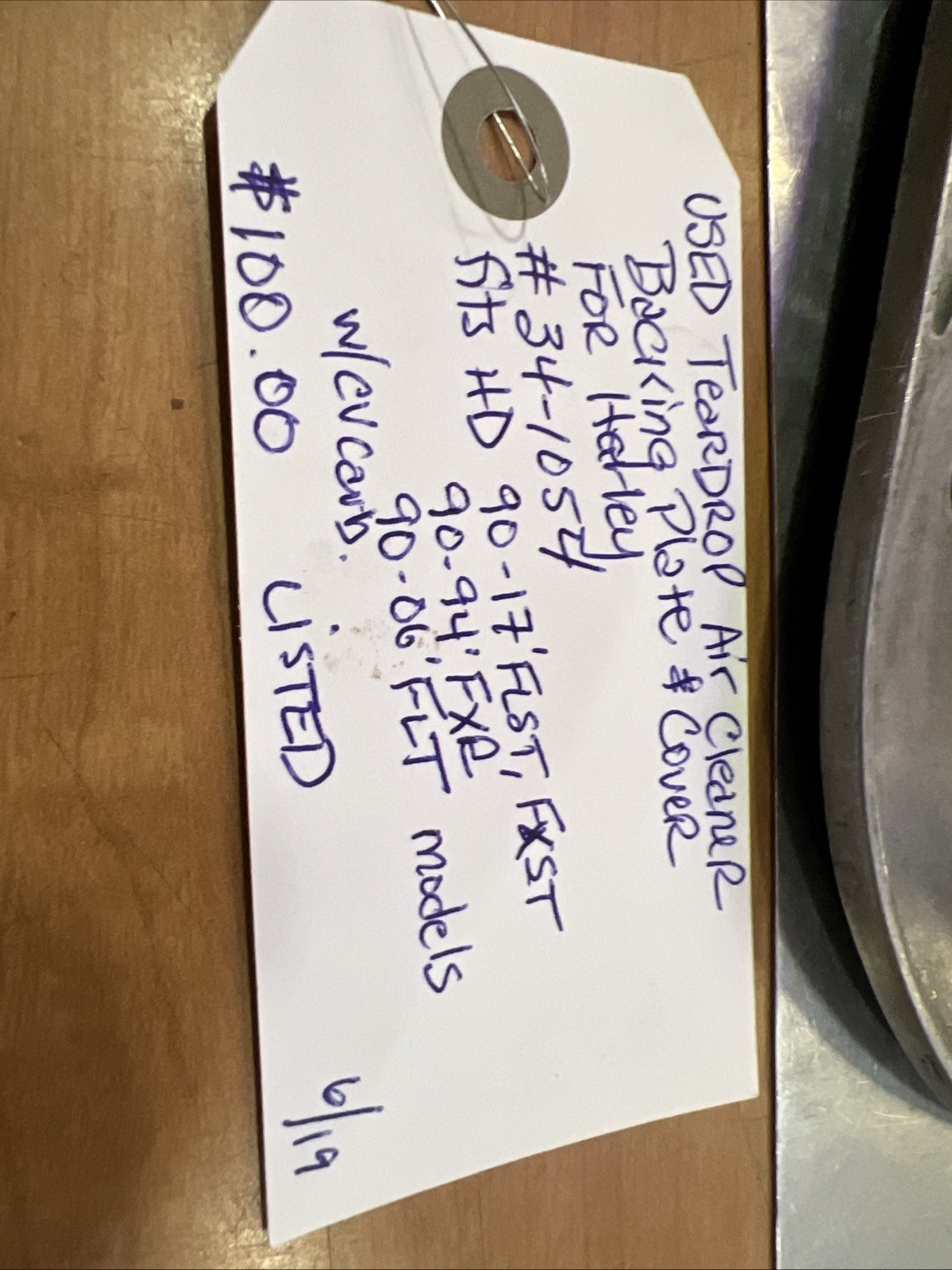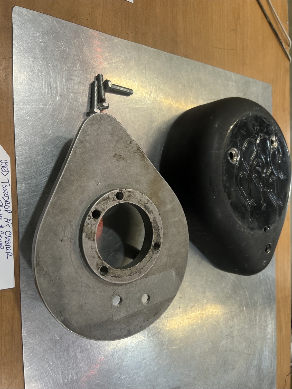 Teardrop Air Cleaner Backing Plate & Cover for Harley #34-1054. Condition is used. Fits Harley Davidson 90-17’ FLST, FXST, 90-94’ FXR, 90-06’ FLT models with CV carb buyer is responsible for fitment and applications