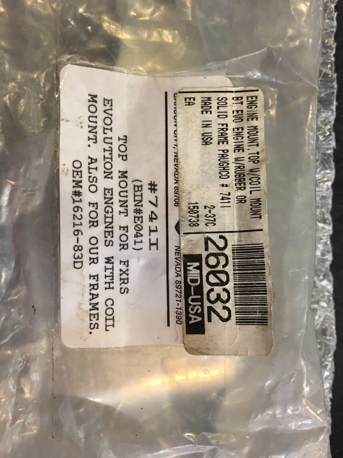 Engine Mount Top With Coil Mount #26032. Condition is New.fits Big Twin EVO with rubber or solid frame Paughco #7411 replaces OEM #16216-83D buyer is responsible for fitment and applications