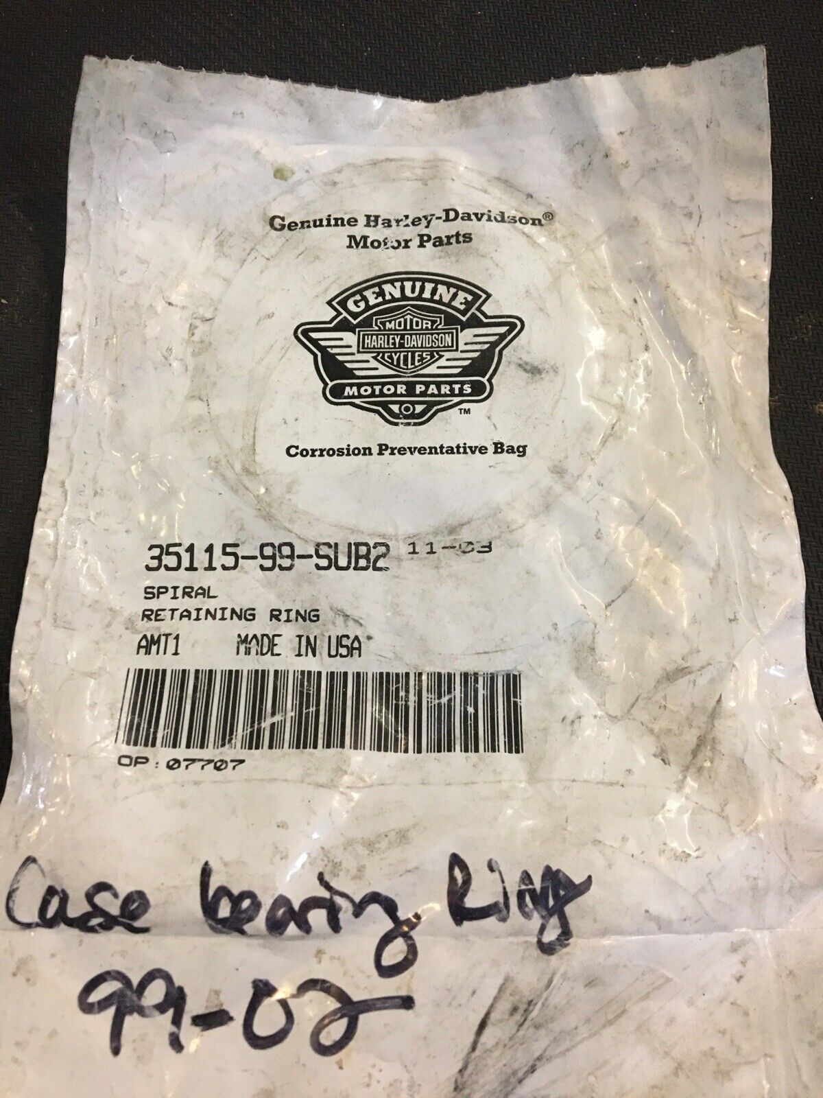 Harley Davidson OEM Spiral Retaining Ring For Crankcase Bearing #35115-99. Condition is New.obsolete item fits 99-02’ Touring, FXD, Dyna models buyer is responsible for fitment and applications