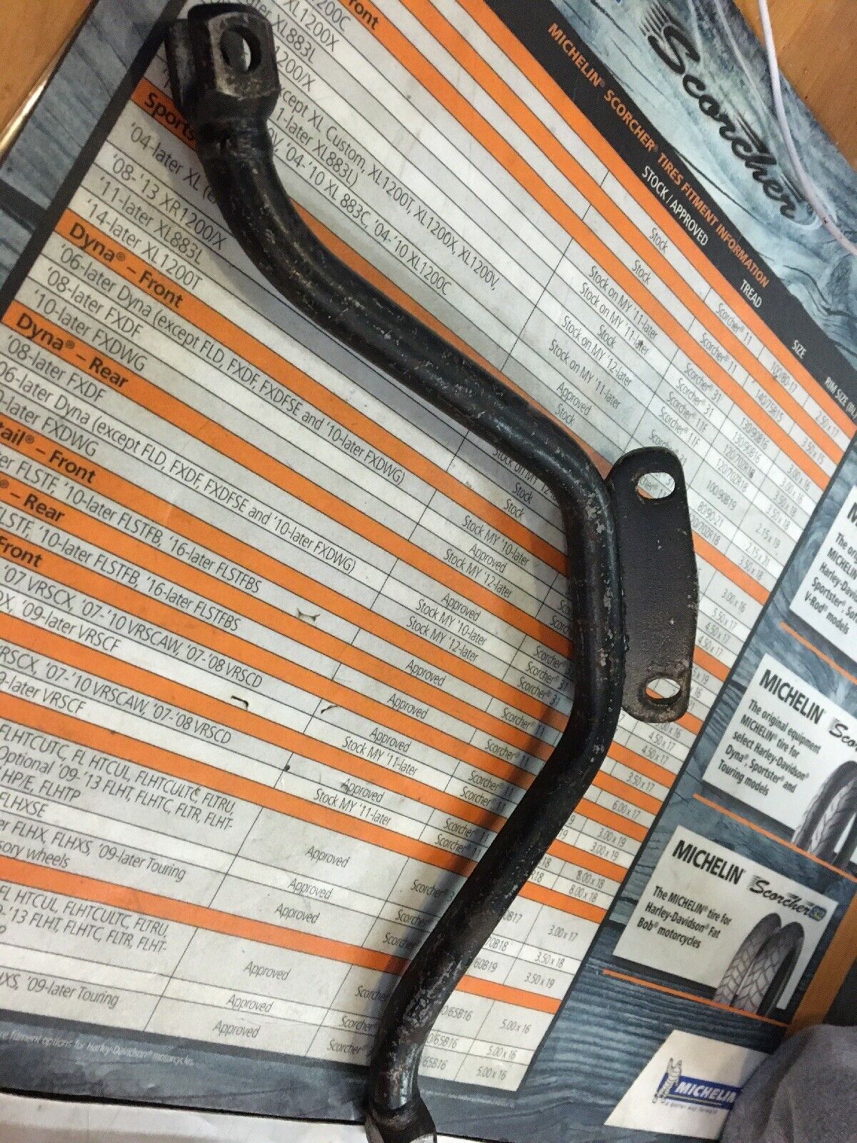 Harley Davidson Rear Footpeg Bracket. Condition is Used.fits 57-78’ XL models bolts to rear motor mount for use on rigid or swing arm frames buyer is responsible for fitment and applications