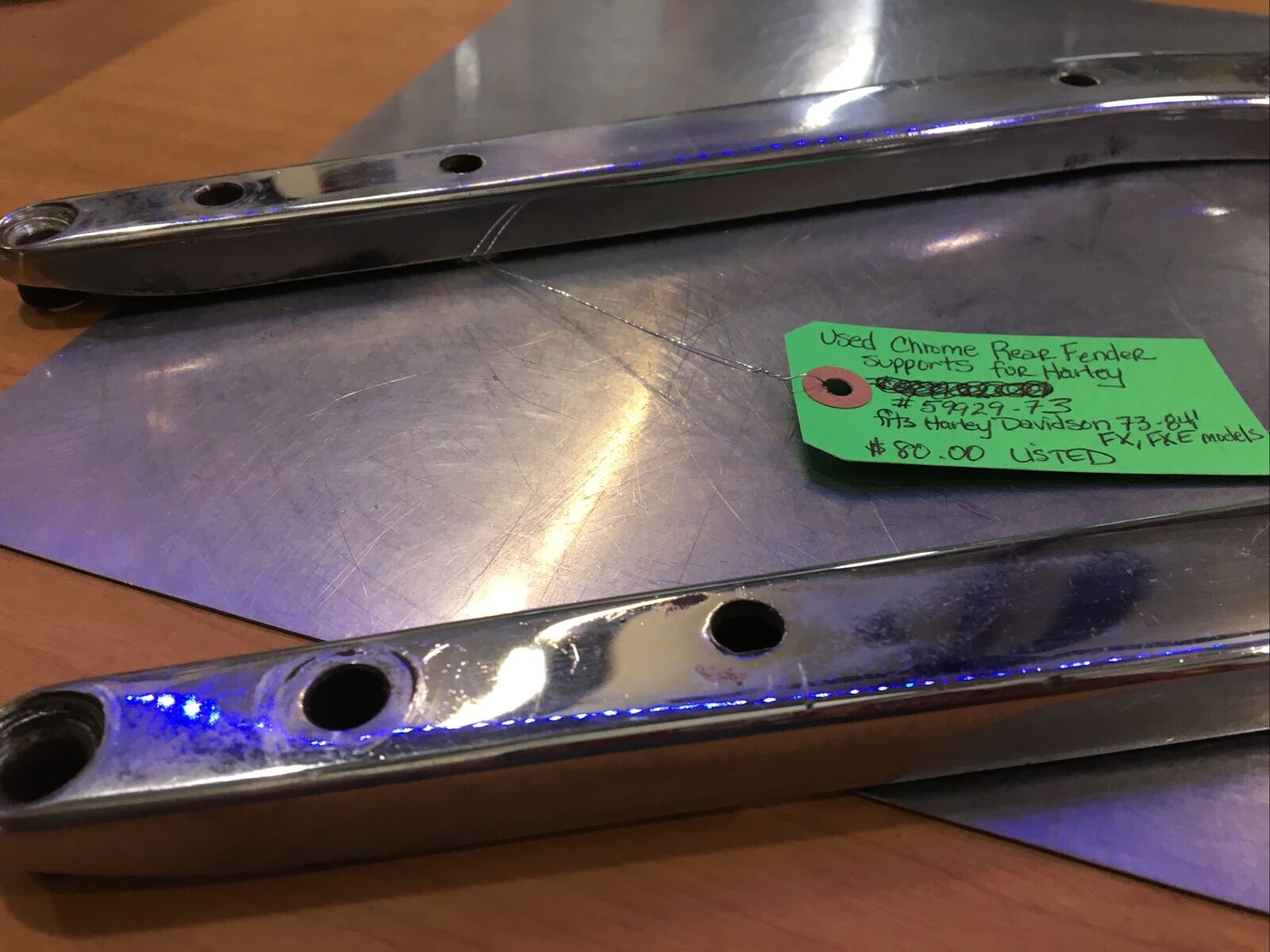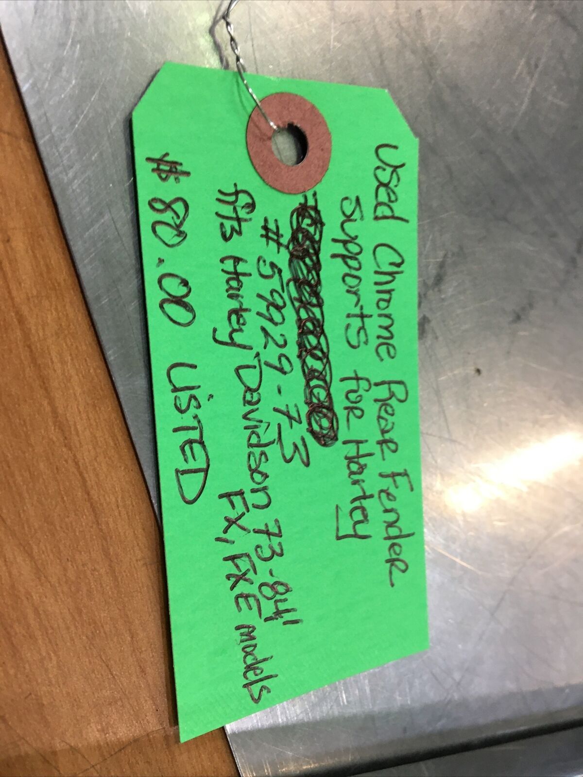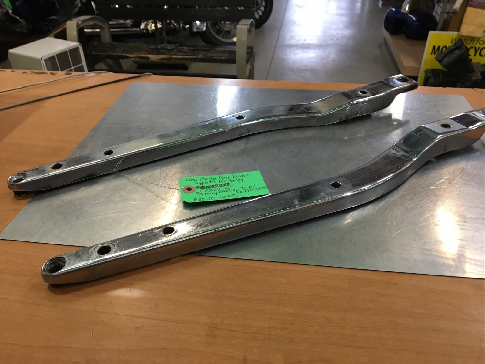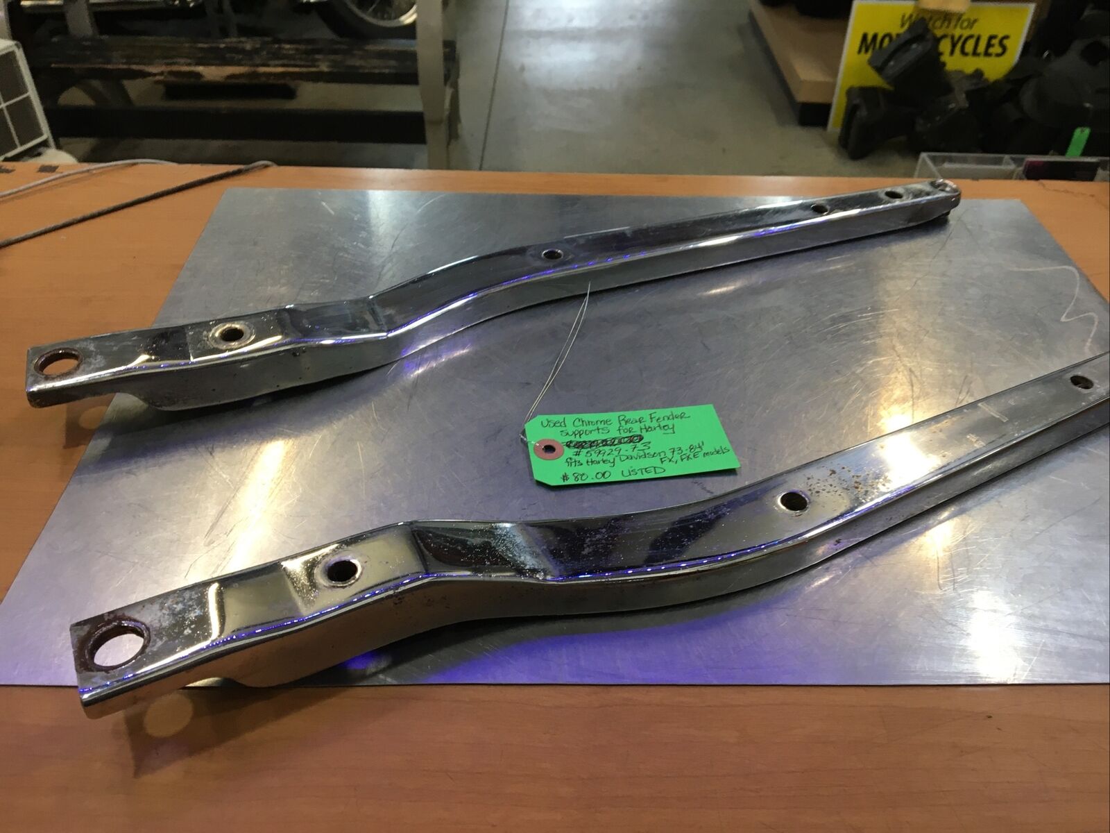 Chrome Rear Fender Supports for Harley #59929-73. Condition is used. Fits Harley Davidson 73-84’ FX, FXE models buyer is responsible for fitment and applications