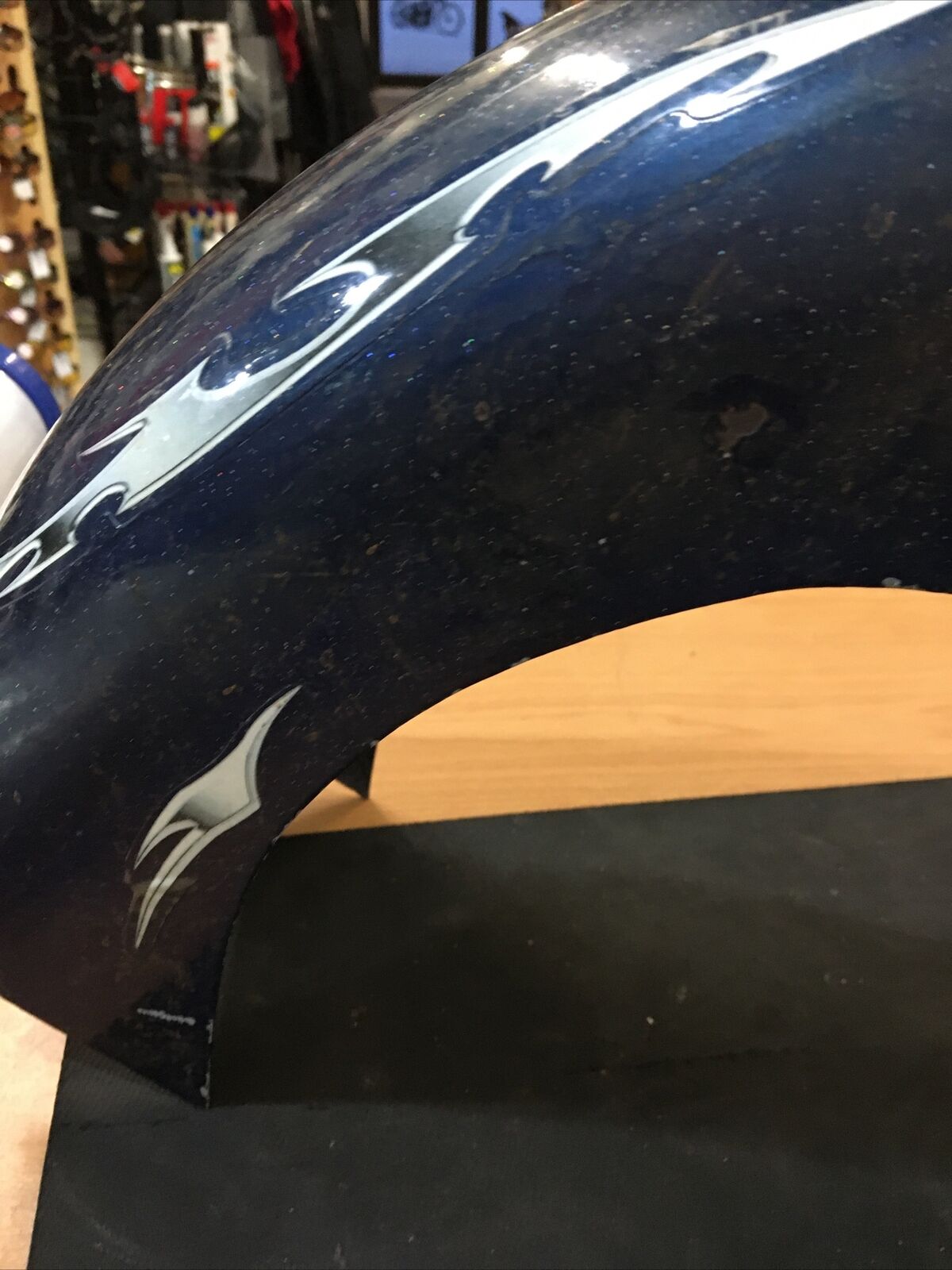 Crafted from high-quality stainless steel, this aftermarket front fender is designed to not only enhance the aesthetics of your bike but also provide added durability and protection. The sleek blue finish adds a pop of color that is sure to turn heads wherever you go. And with its custom fit design, this front fender seamlessly integrates with your bike’s existing body and frame parts, giving it a polished and cohesive look.
