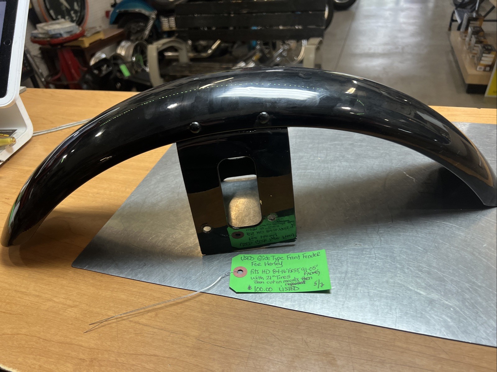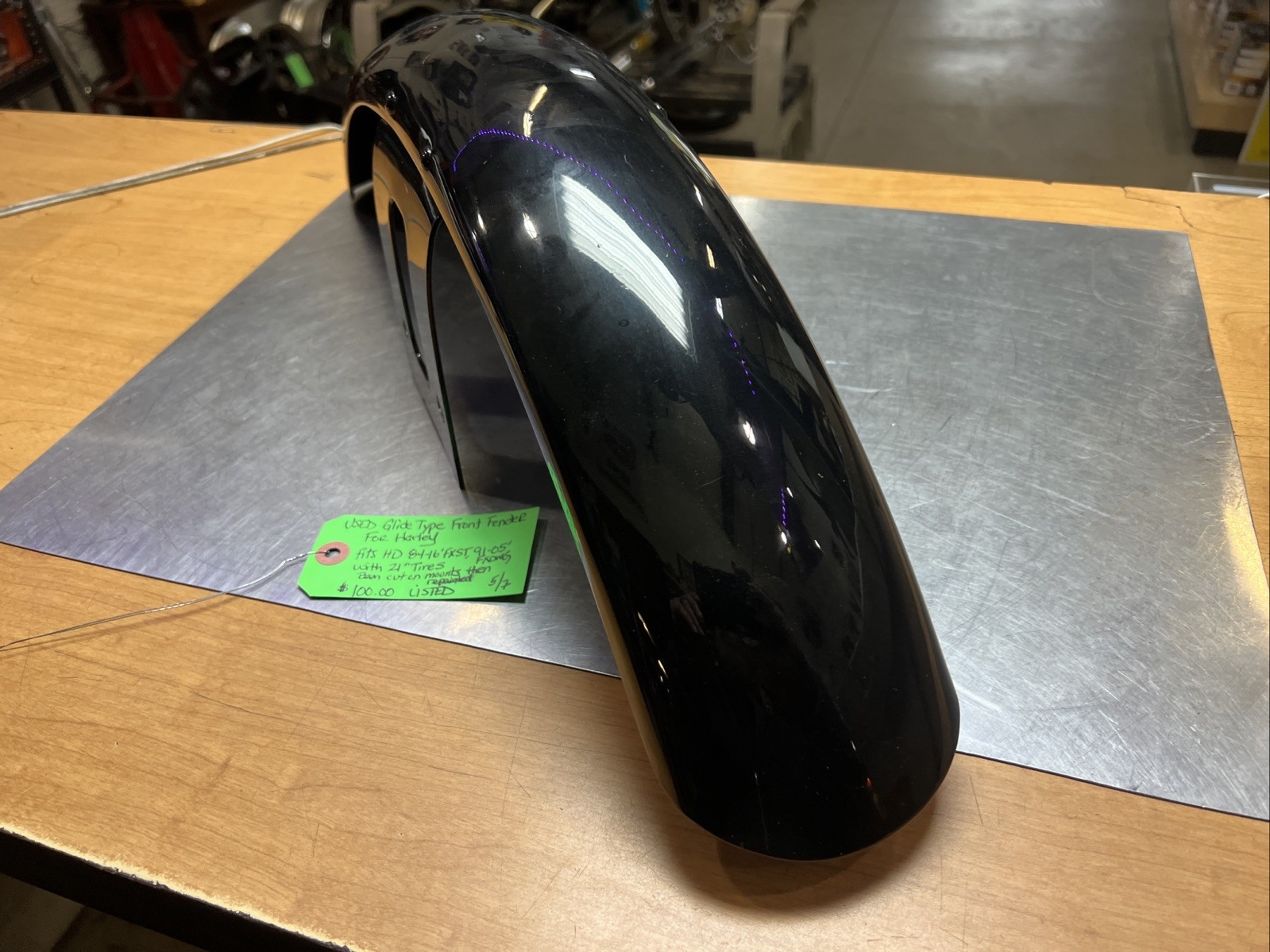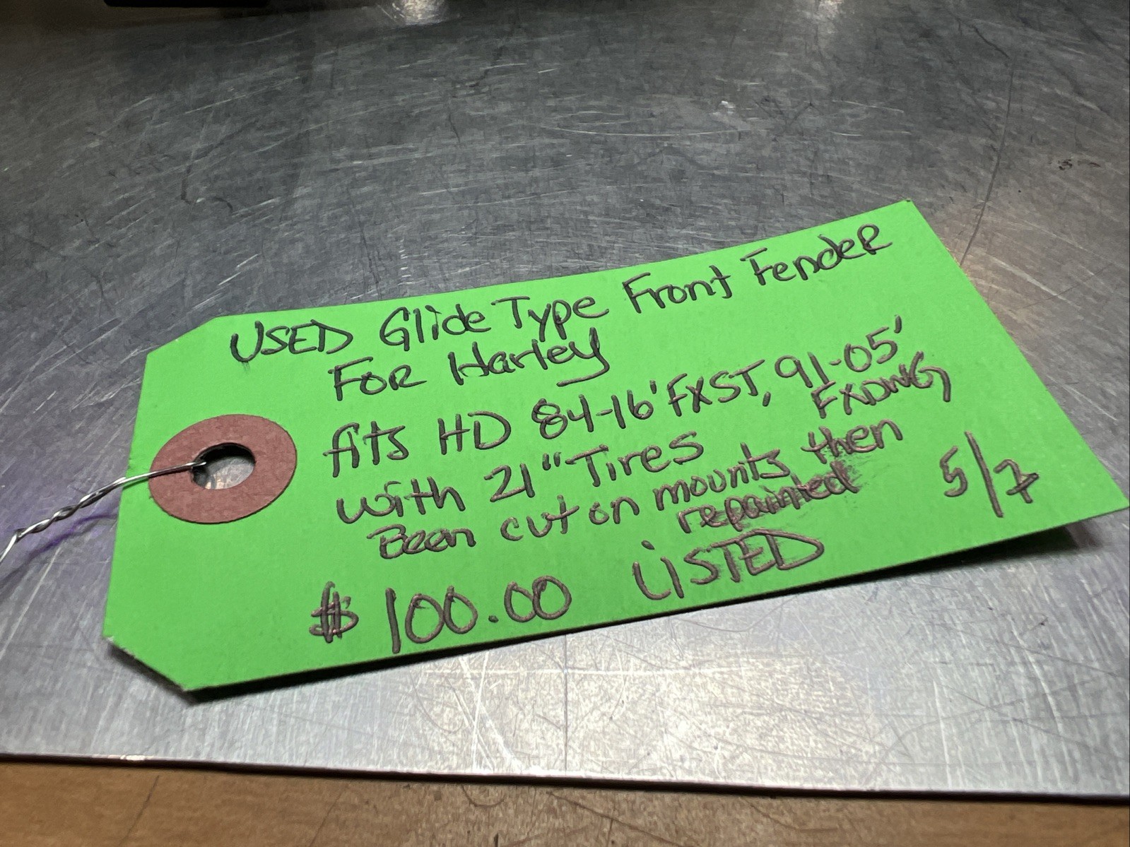 Glide Type Front Fender for Harley. Condition is used. Been cut on mounts then repainted. Fits Harley Davidson 84-16’ FXST, 91-05’ FXDWG models with 21” tires buyer is responsible for fitment and applications