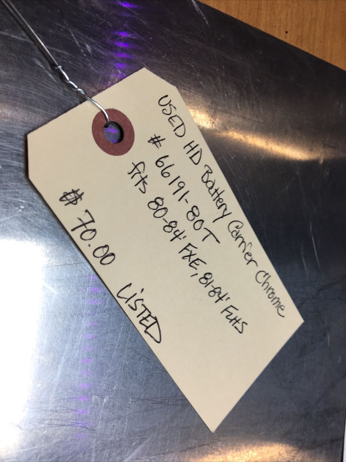 Harley Davidson Battery Carrier Chrome #66191-80T. Condition is used. Fits 80-84’ FXE, 81-84’ FLHS models buyer is responsible for fitment and applications