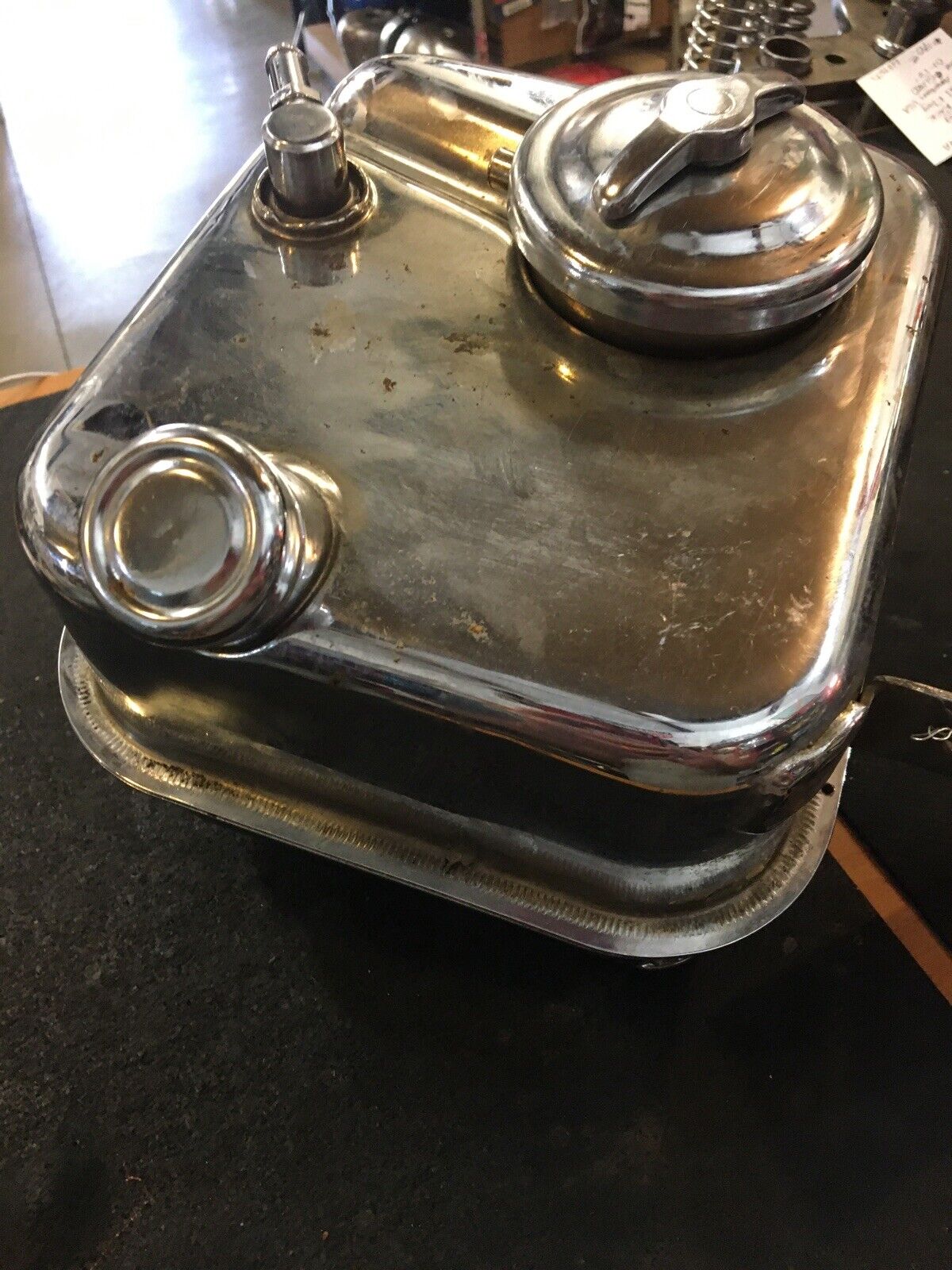 Harley Davidson Chrome Oil Tank #62504-65B. Condition is Used.fits 71-80’ FX, 65-80’ FL it is pitted and spots where there is some oxidation buyer is responsible for fitment and applications no returns