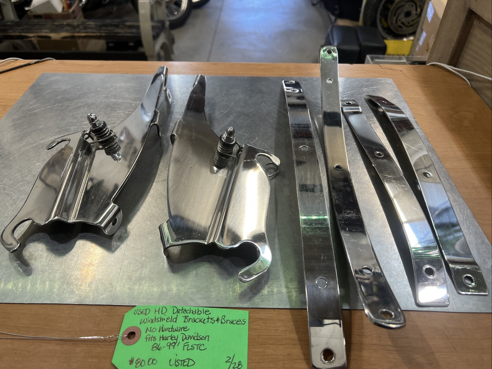 Harley Davidson Detachable Windshield Brackets & Braces. Condition is used. No hardware. Fits 86-99’ FLSTC buyer is responsible for fitment and applications