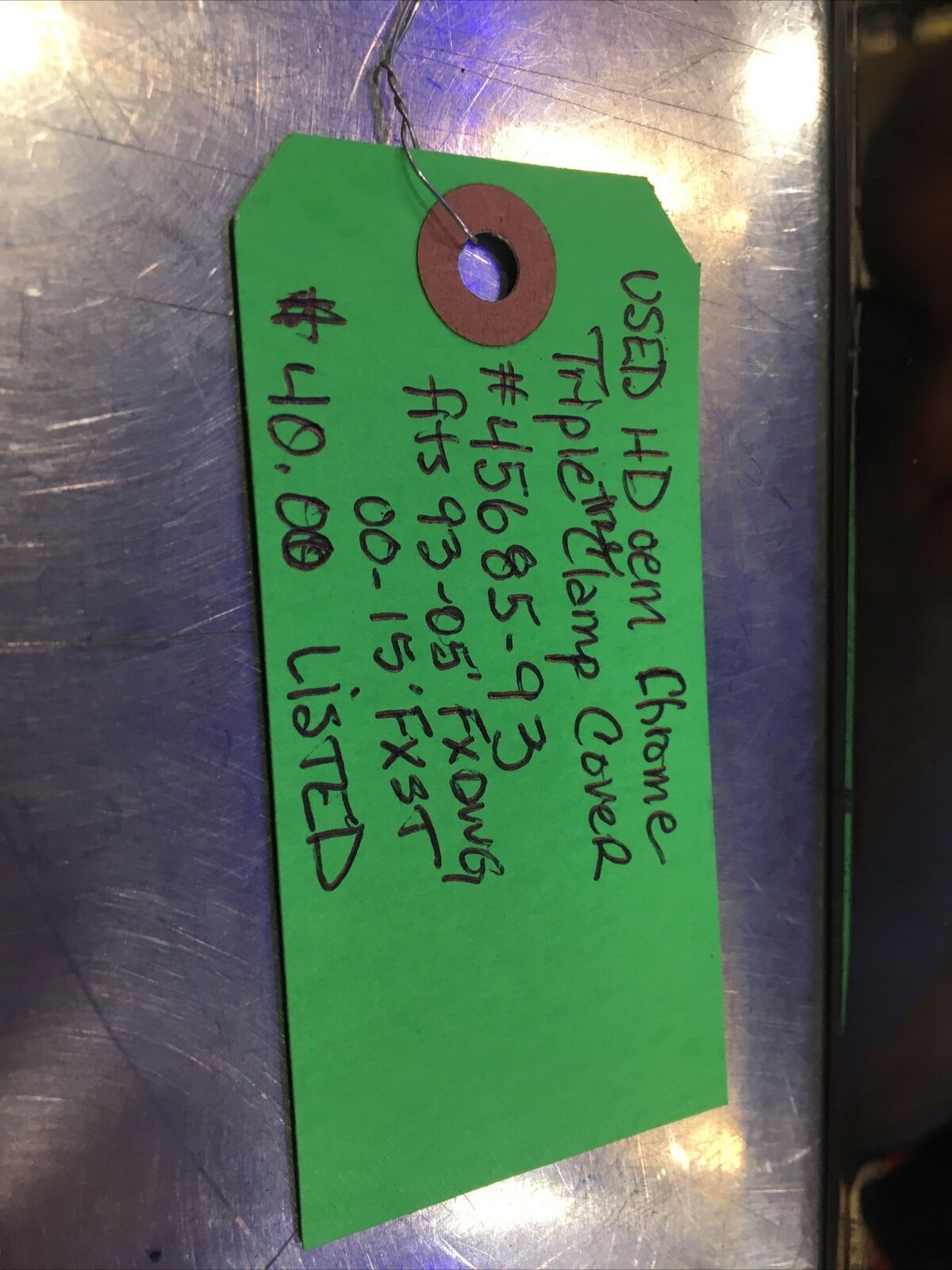 Harley Davidson oem Chrome Triple Tree Clamp Cover #45685-93. Condition is used. Fits 93-05’ FXDWG, 00-15’ FXST models buyer is responsible for fitment and applications