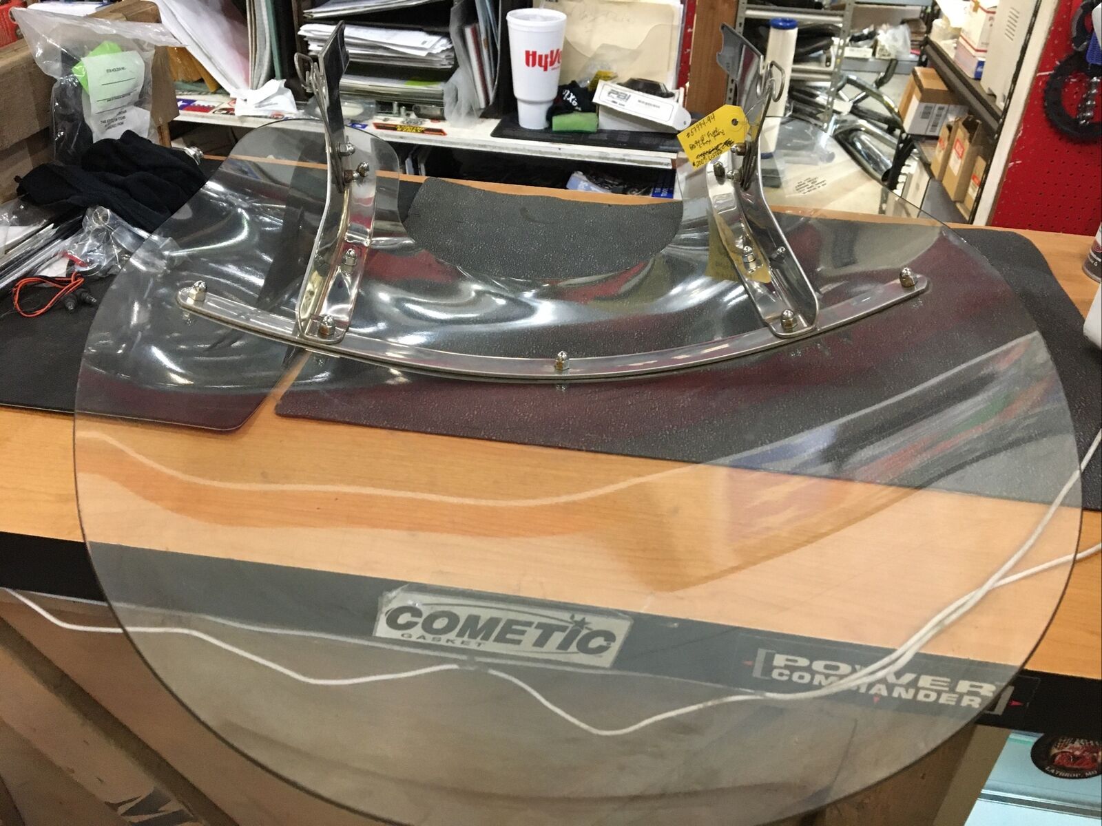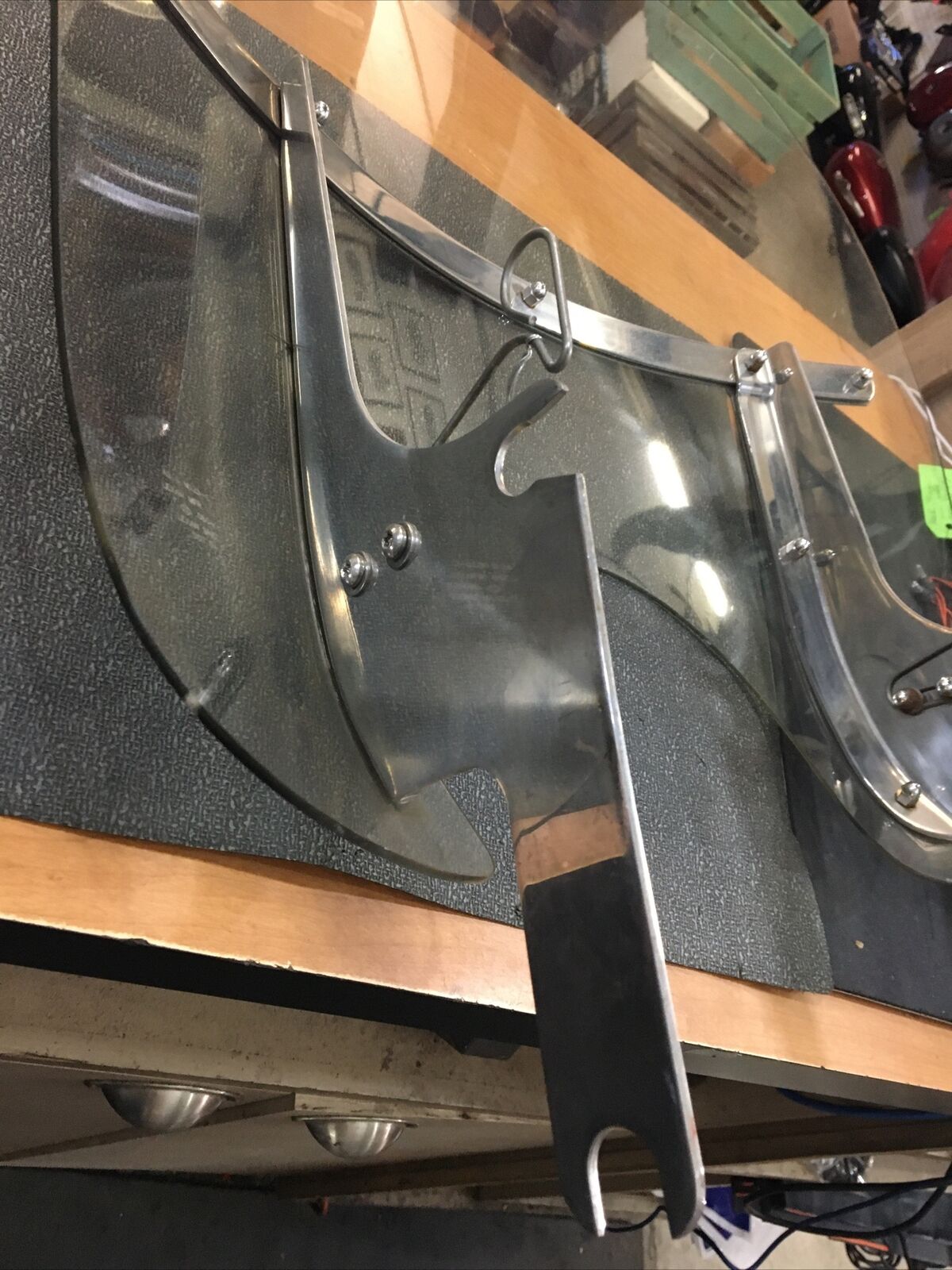 Harley Davidson OEM Detachable windshield #57994-94. Condition is used. Obsolete item. Has scratches and scuffs.