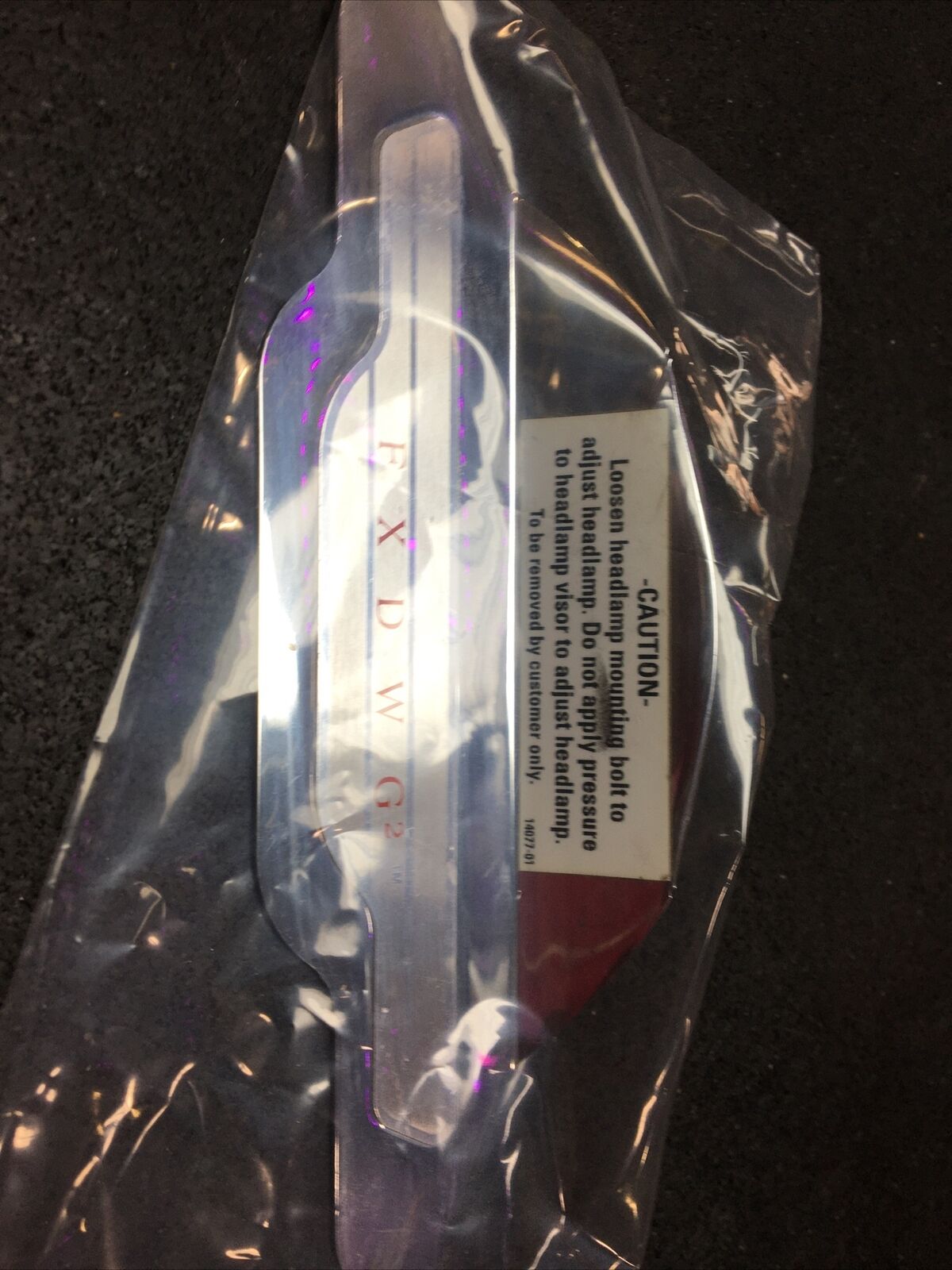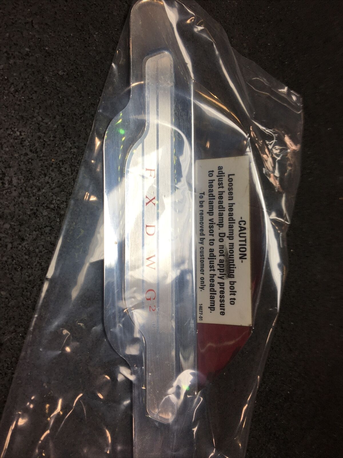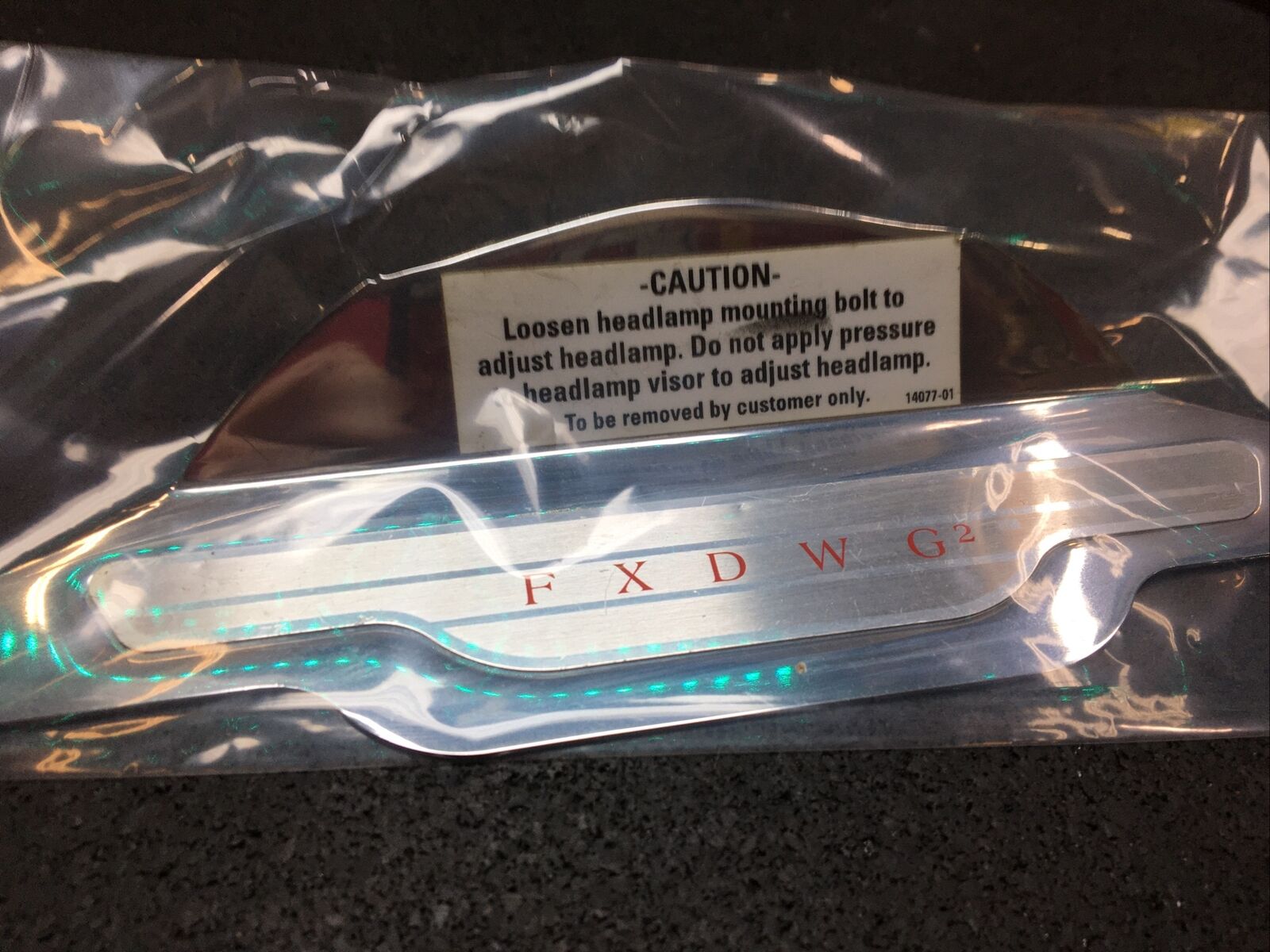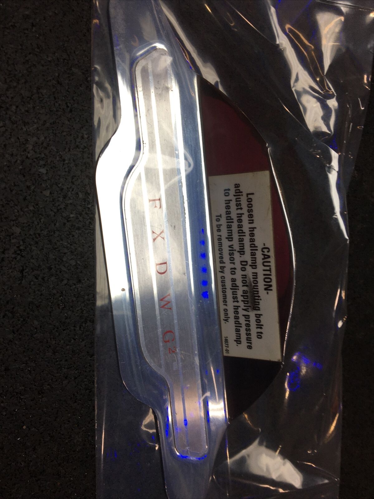 Harley Davidson oem Headlamp Visor Inner Trim and Decal #68039-01/13563-01. Condition is used. Fits 01-02’ FXDWG 2 models buyer is responsible for fitment and applications