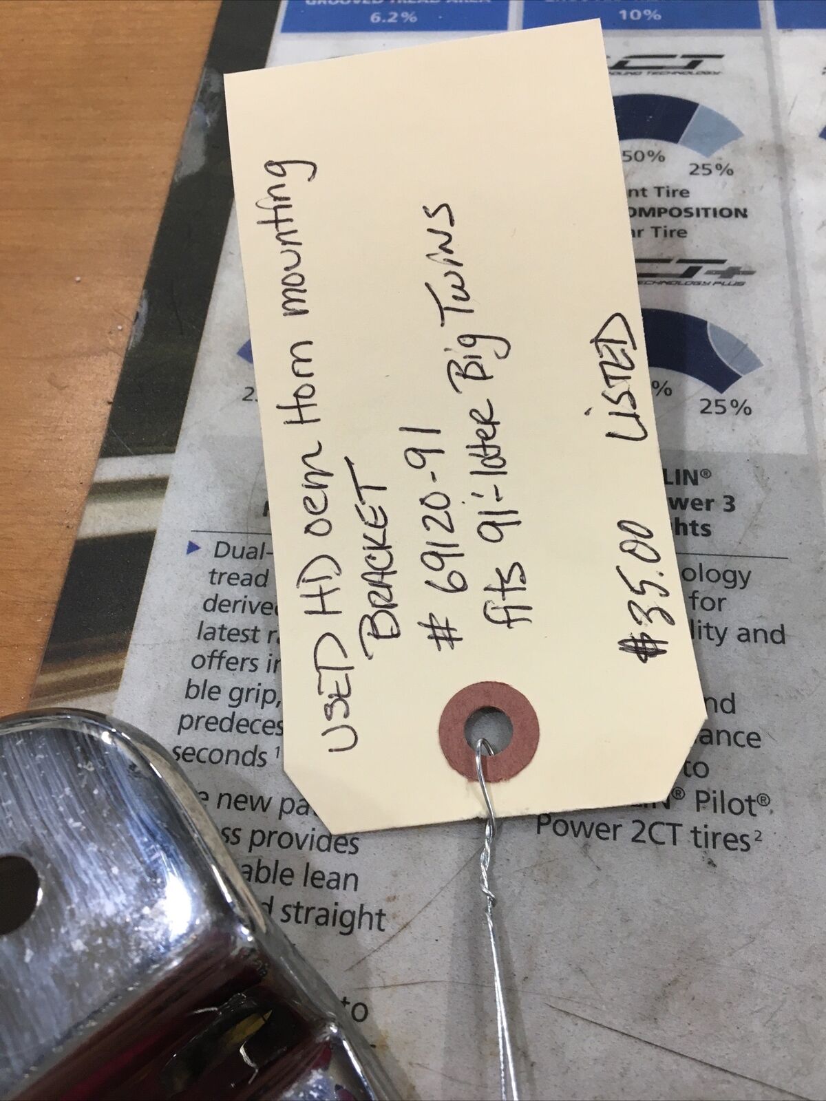 Harley Davidson oem Horn Mounting Bracket #69120-91. Condition is used. Fits 91’-later Big Twins buyer is responsible for fitment and applications