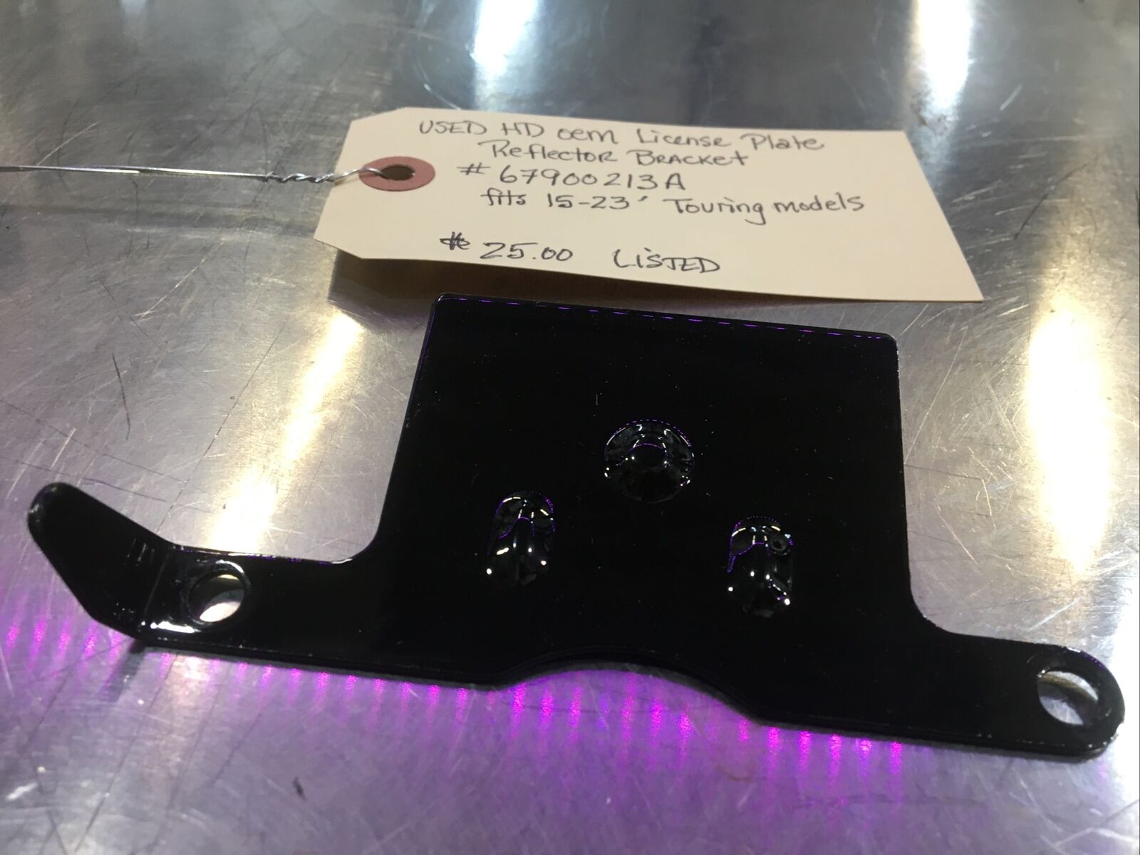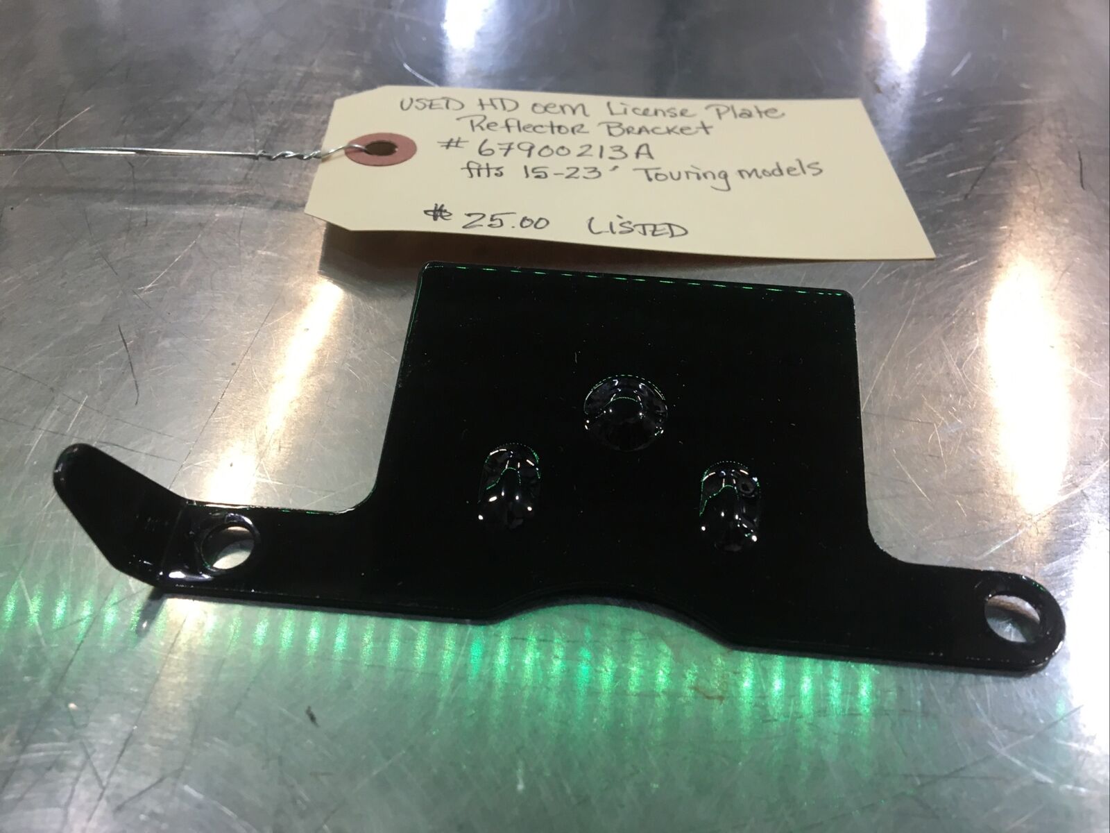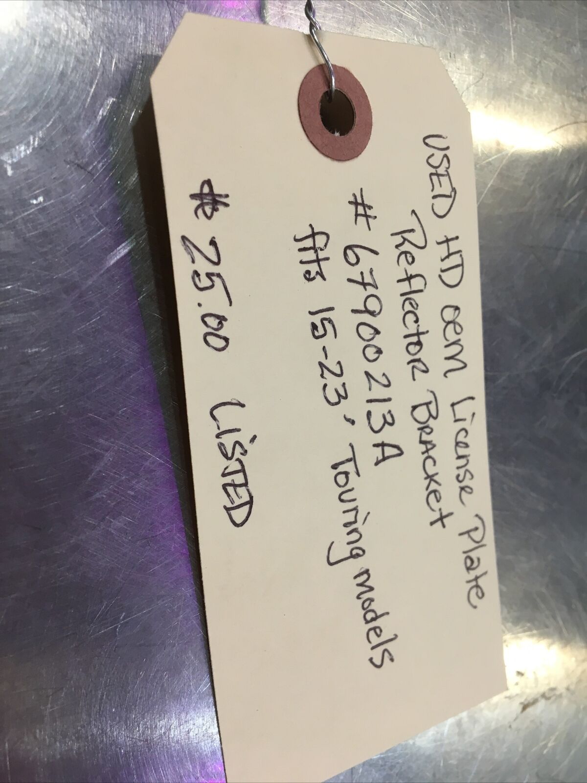 Harley Davidson oem License Plate Reflector Bracket #67900213A. Condition is used. Fits 15-23’ Touring models buyer is responsible for fitment and applications