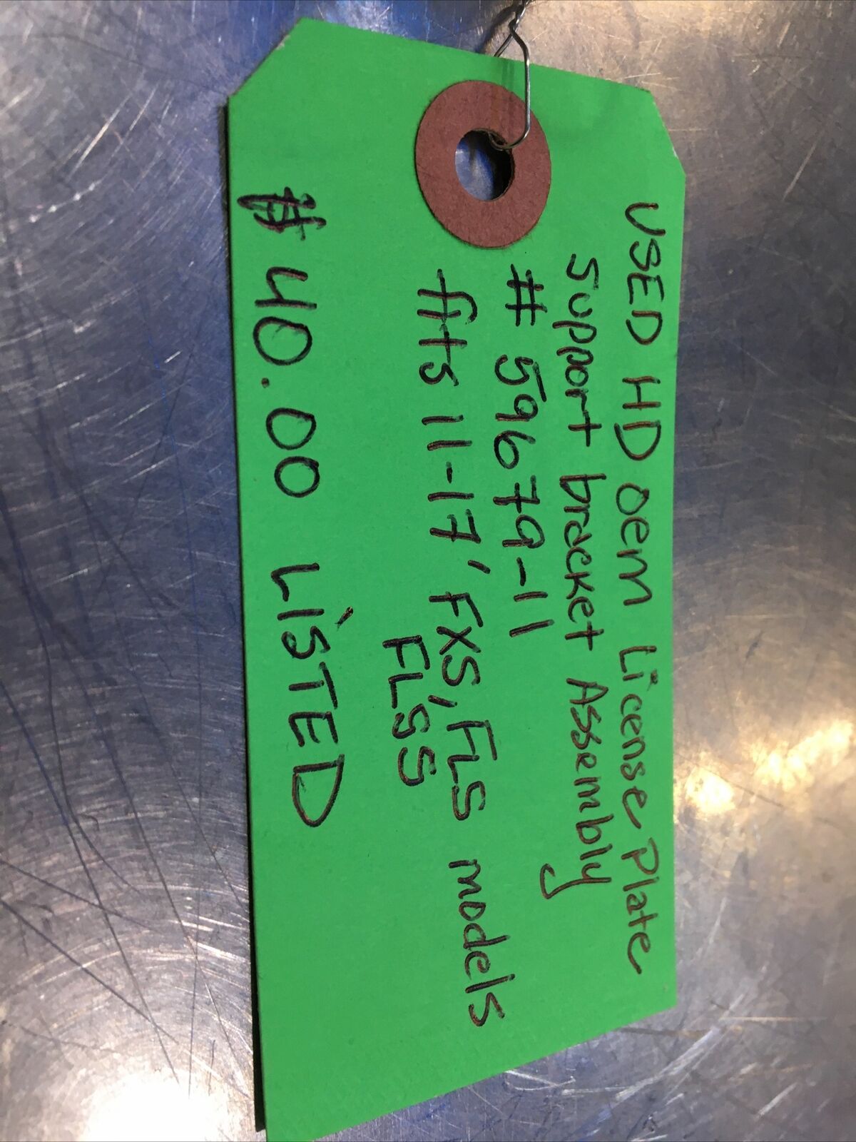 Harley Davidson oem License Plate Support Bracket Assembly #59679-11. Condition is used. Fits 11-17’ FXS, FLS, FLSS models buyer is responsible for fitment and applications