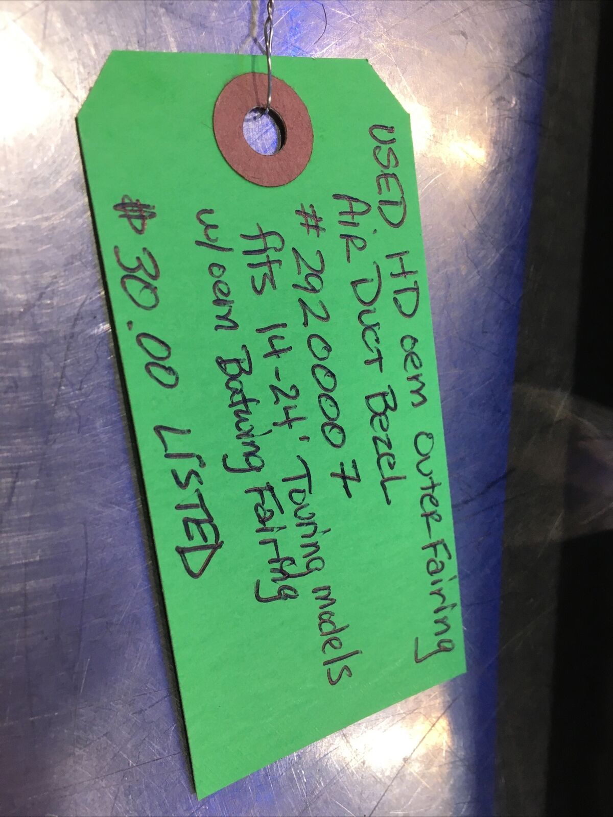 Harley Davidson oem Outer Fairing Air Duct Bezel #29200007. Condition is used. Fits 14-24’ Touring models with OEM batwing fairing buyer is responsible for fitment and applications