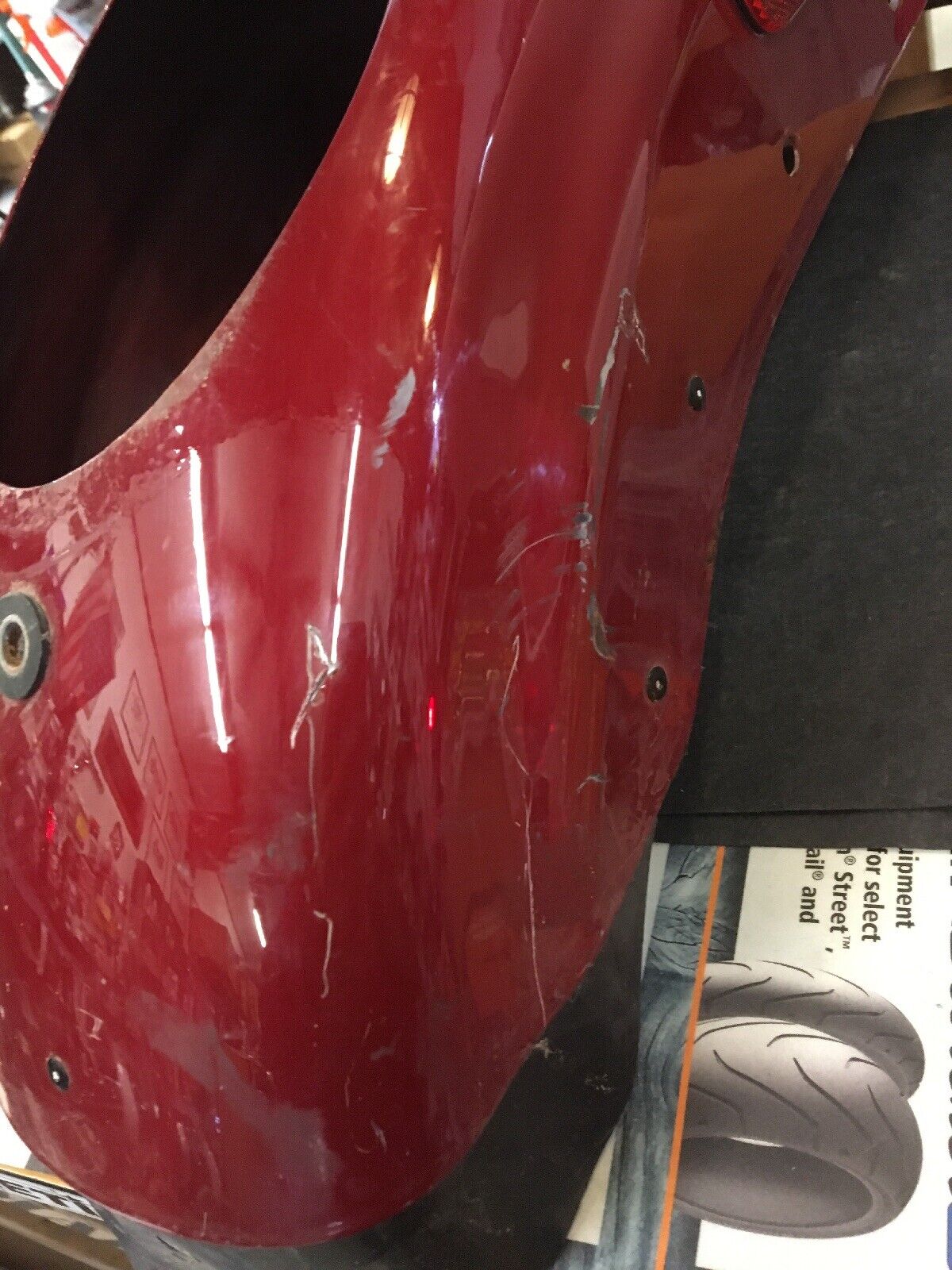 Harley Davidson OEM Rear Fender #59847-09CYS. Condition is Used.fits 07’-later XL1200 models came off of 09’XL1200 fire red pearl has scuffs and scratches would need to be repainted buyer is responsible for fitment and applications