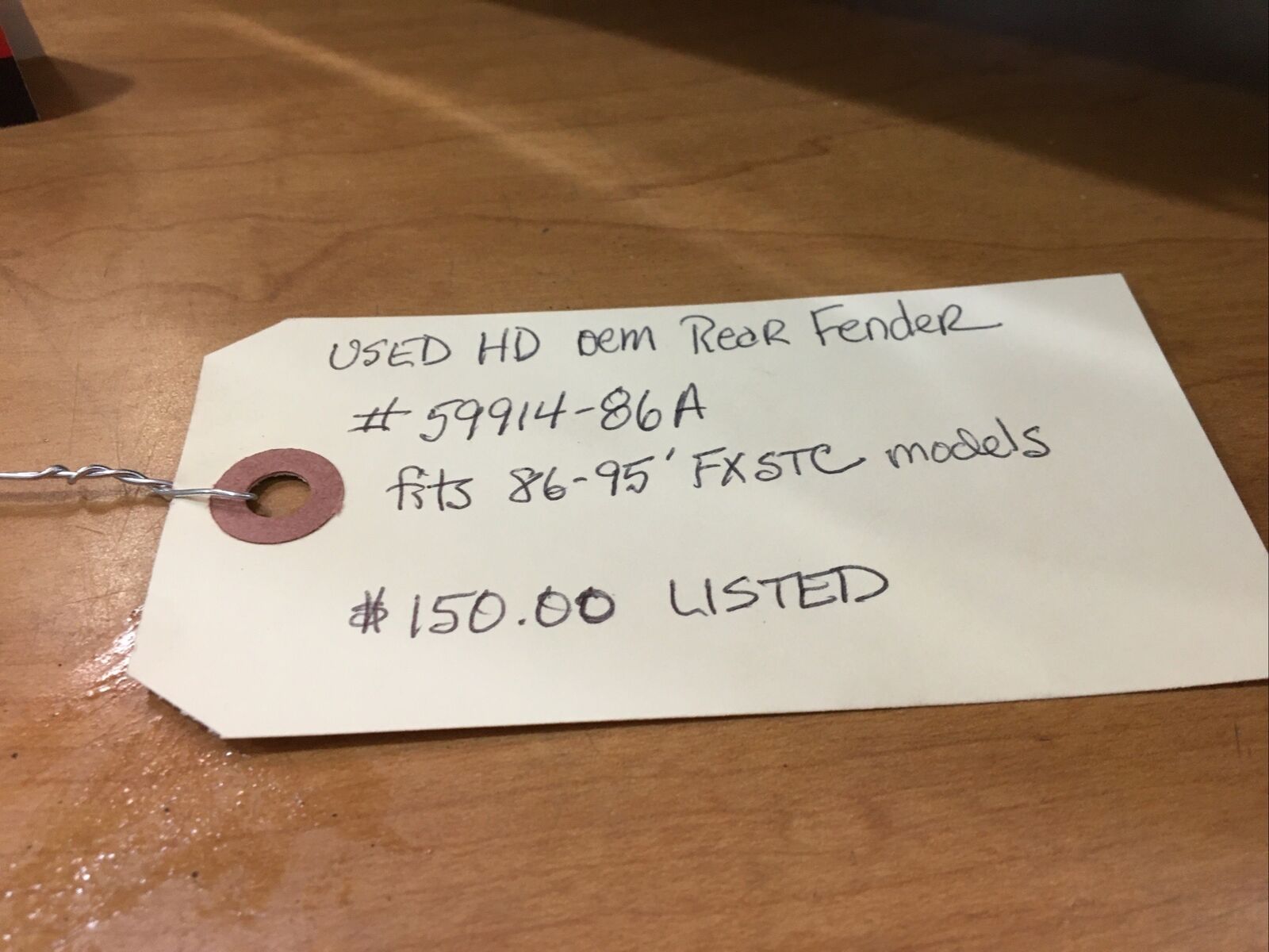 Harley Davidson oem Rear Fender #59914-86A.Condition is used as seen in pictures. Has scratches, chipped paint and looks like someone tried to repaint.Fits 86-95’ FXSTC models buyer is responsible for fitment and applications