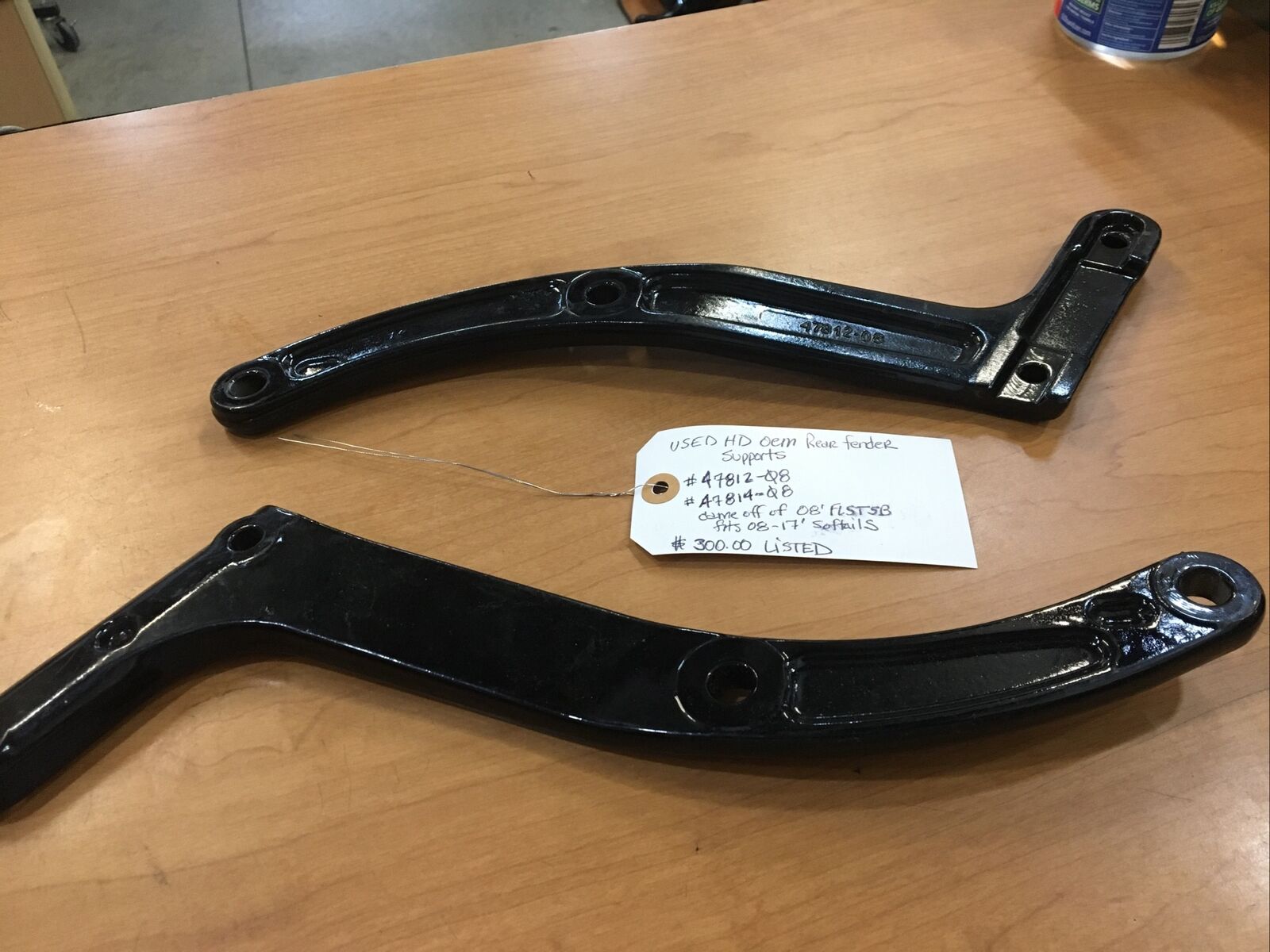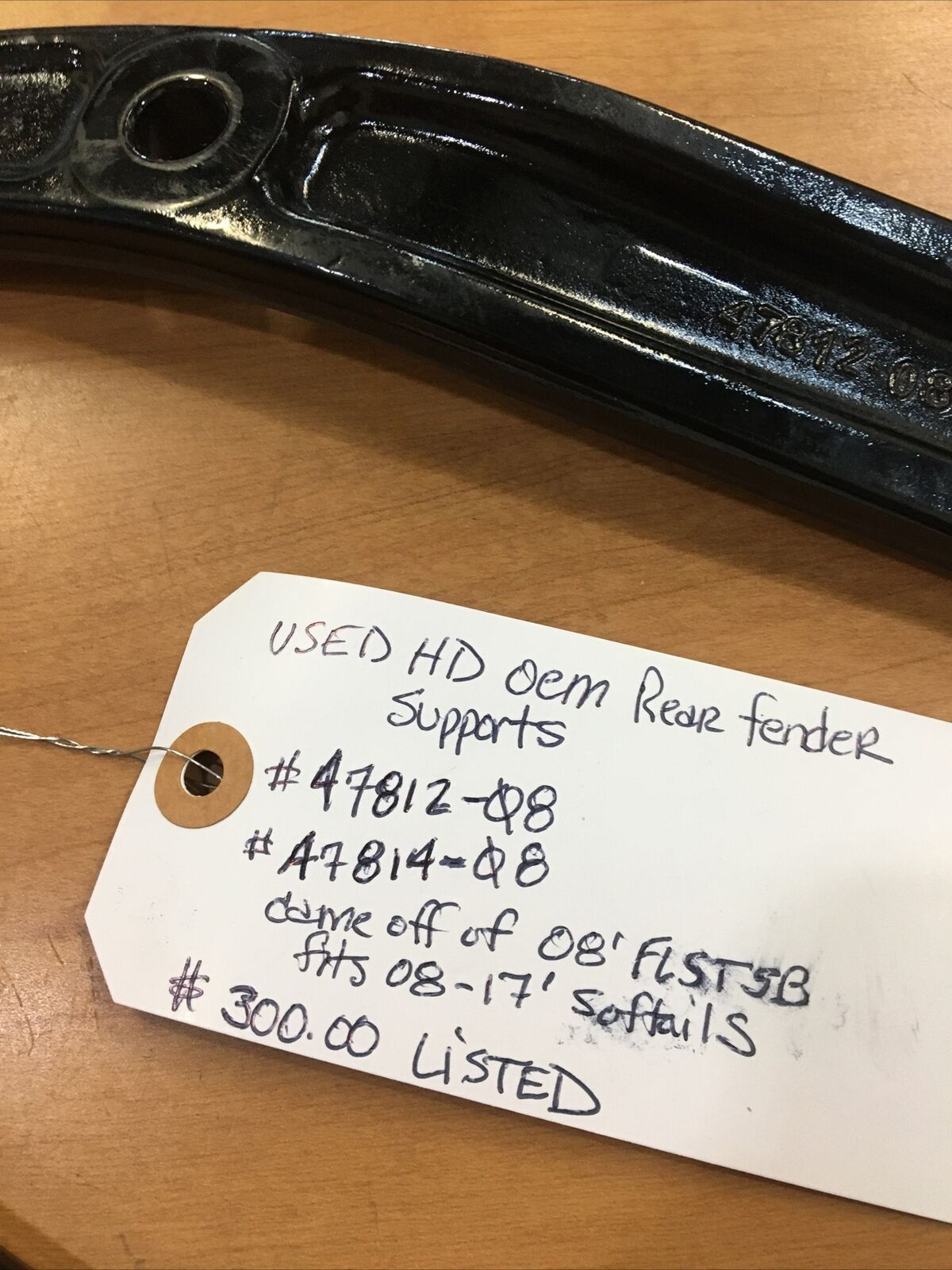 Harley Davidson Oem Rear Fender Supports #47812-08/47814-08. Condition is used. Came off of 08’ FLSTSB. Fits 08-17’ Softails buyer is responsible for fitment and applications