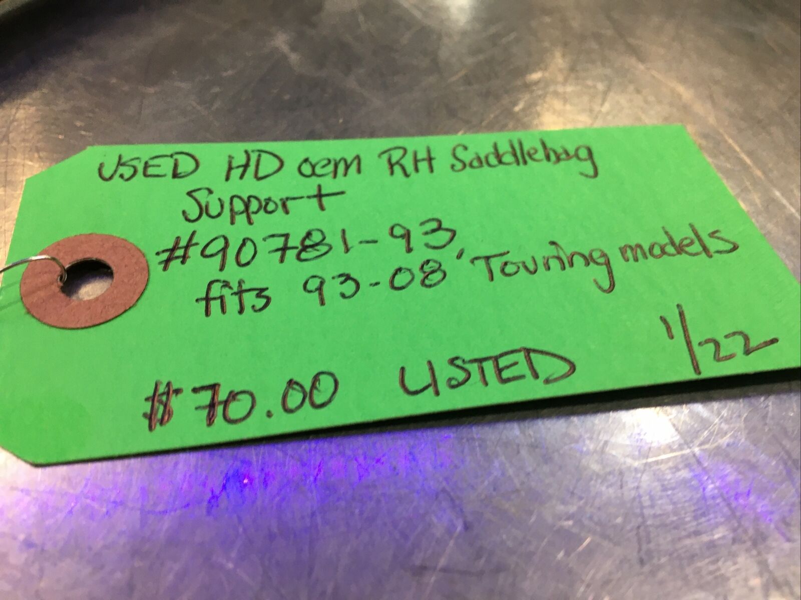 Harley Davidson oem RH Saddlebag Support #90781-93. Condition is used. Fits 93-08’ Touring models buyer is responsible for fitment and applications