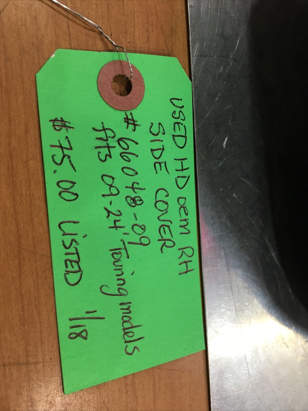 Harley Davidson oem RH Side Cover #66048-09. Condition is used. Has some scratches and One of the mounting tabs has been epoxied. Fits 09-24’ Touring models buyer is responsible for fitment and applications