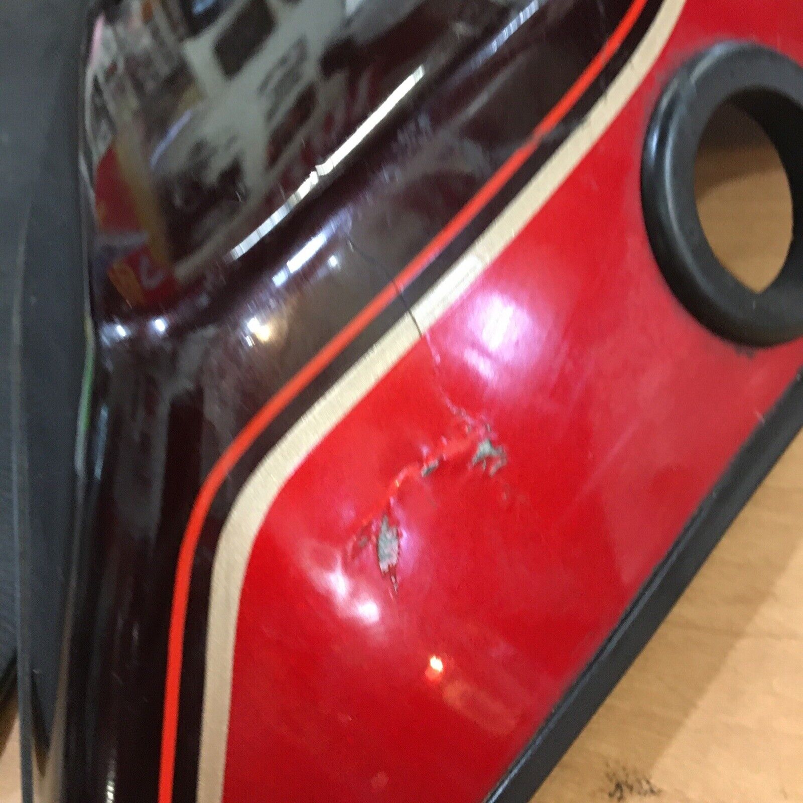 Condition is used. Has scratches and scuffs and some chips and a crack in the paint but not thru the plastic as seen in pictures. Fits 80-92’ FLH Models buyer is responsible for fitment and applications no returns