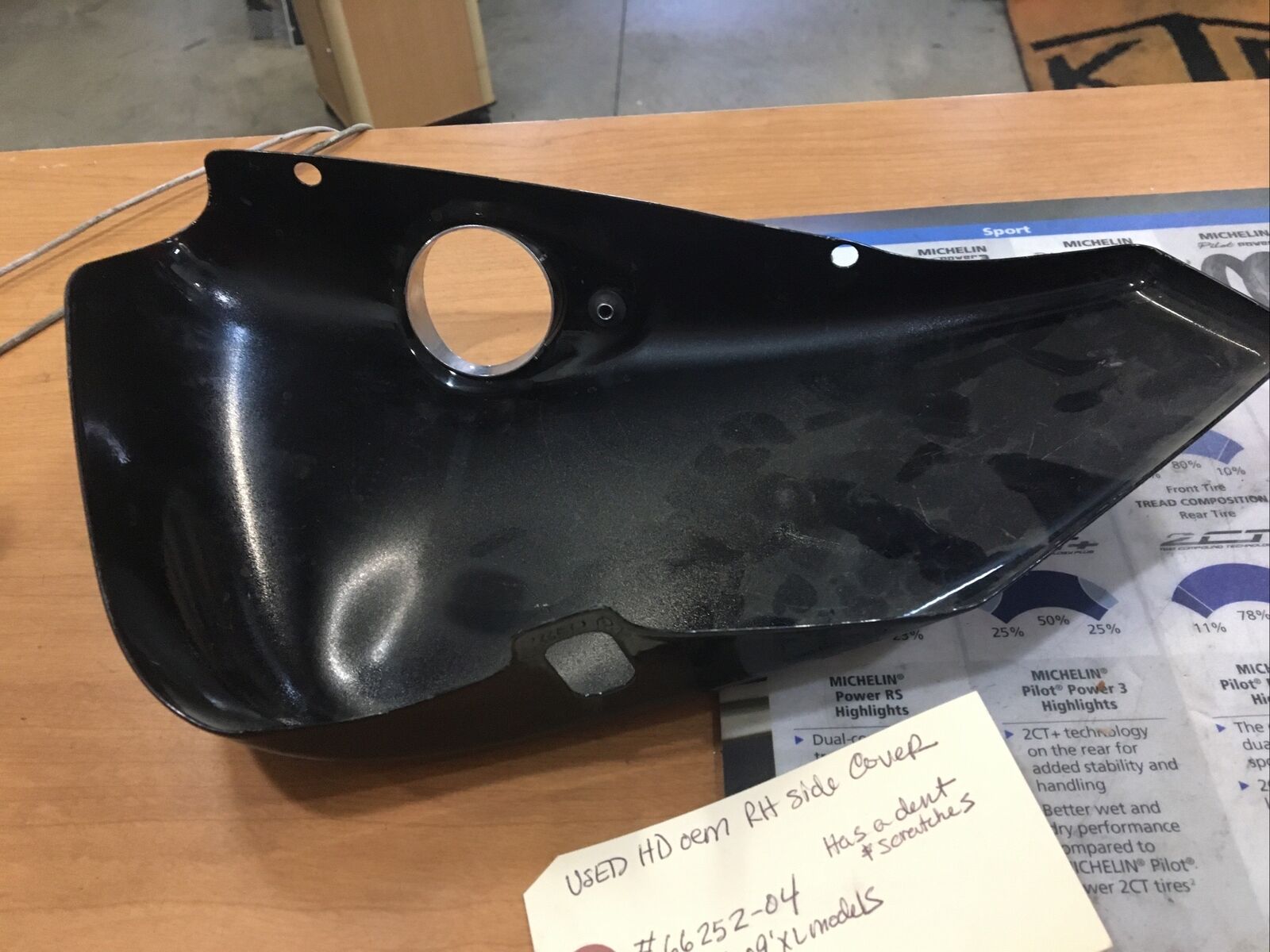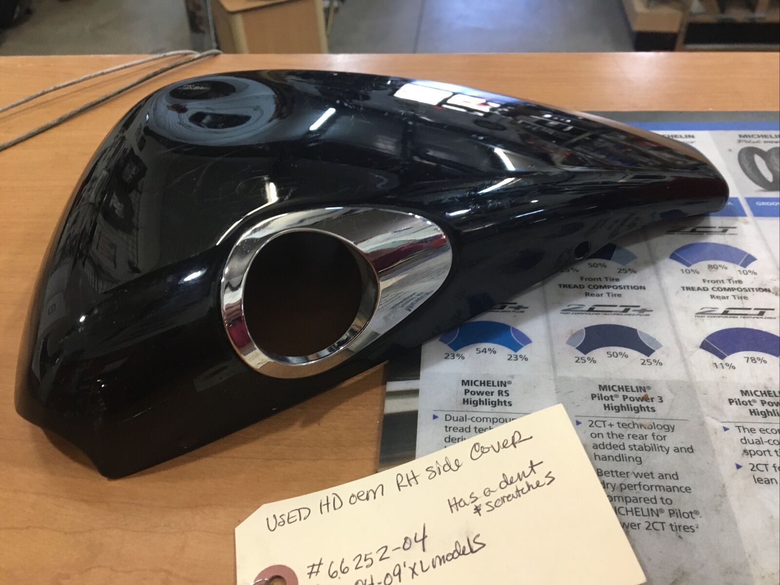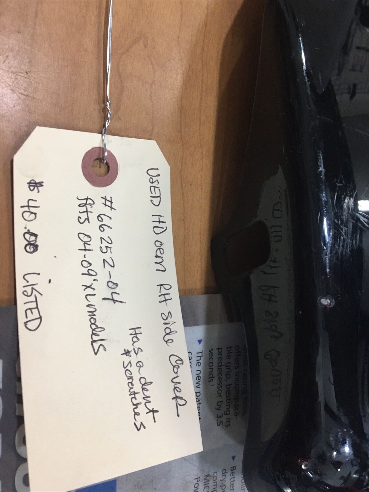 Harley Davidson oem RH Side Cover #66252-04. Condition is used has some scratches and a dent. Fits 04-09’ XL models buyer is responsible for fitment and applications