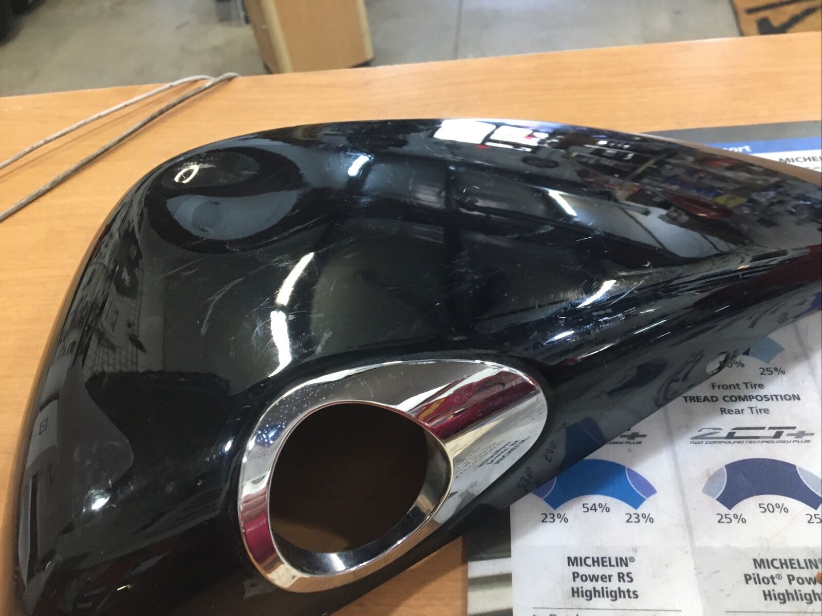 While this side cover may have some scratches and a dent, it still retains its durability and integrity, ensuring that it will continue to protect and enhance your bike for years to come. And with its sleek black finish, this side cover adds a touch of sophistication to your ride, making it stand out from the crowd.