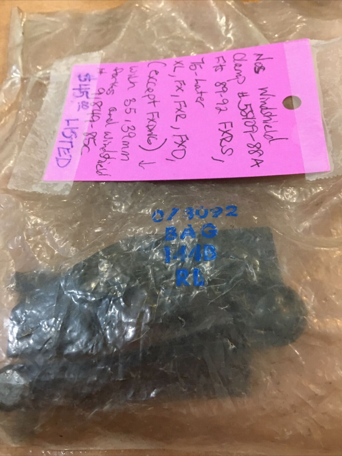 Harley Davidson Windshield Clamp #58109-88A. Condition is “New”.obsolete item fits 35mm, 39mm forks and windshield #91849-85C. 75’-later XL, FX, FXR, FXD models buyer is responsible for fitment and applications no returns
