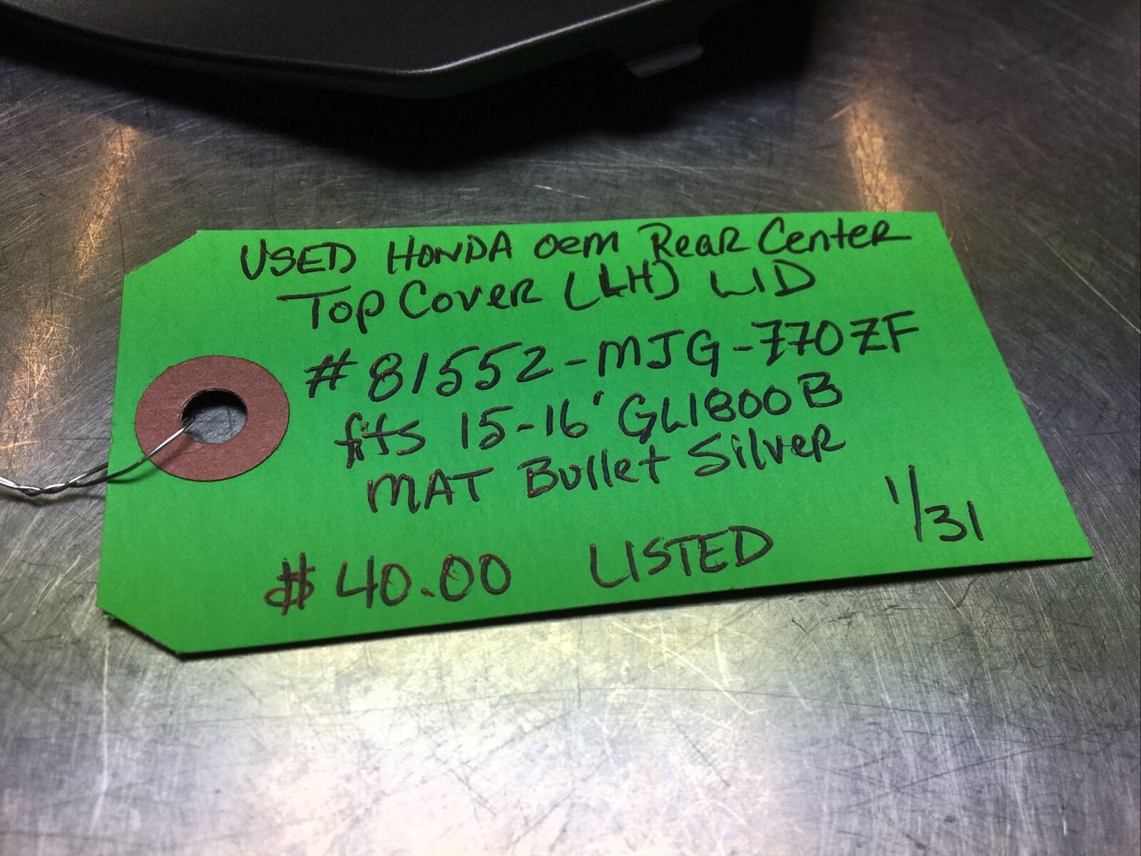 Honda oem Rear Center Top Cover LH Lid #81552-MJG-770ZF. Condition is used. Fits 15-16’ GL1800B models buyer is responsible for fitment and applications