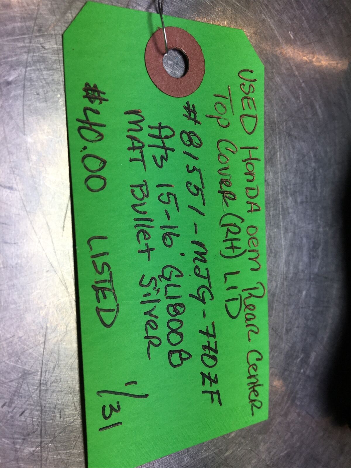 Honda oem Rear Center Top Cover RH Lid #81551-MJG-770ZF. Condition is used. Fits 15-16’ GL1800B models buyer is responsible for fitment and applications