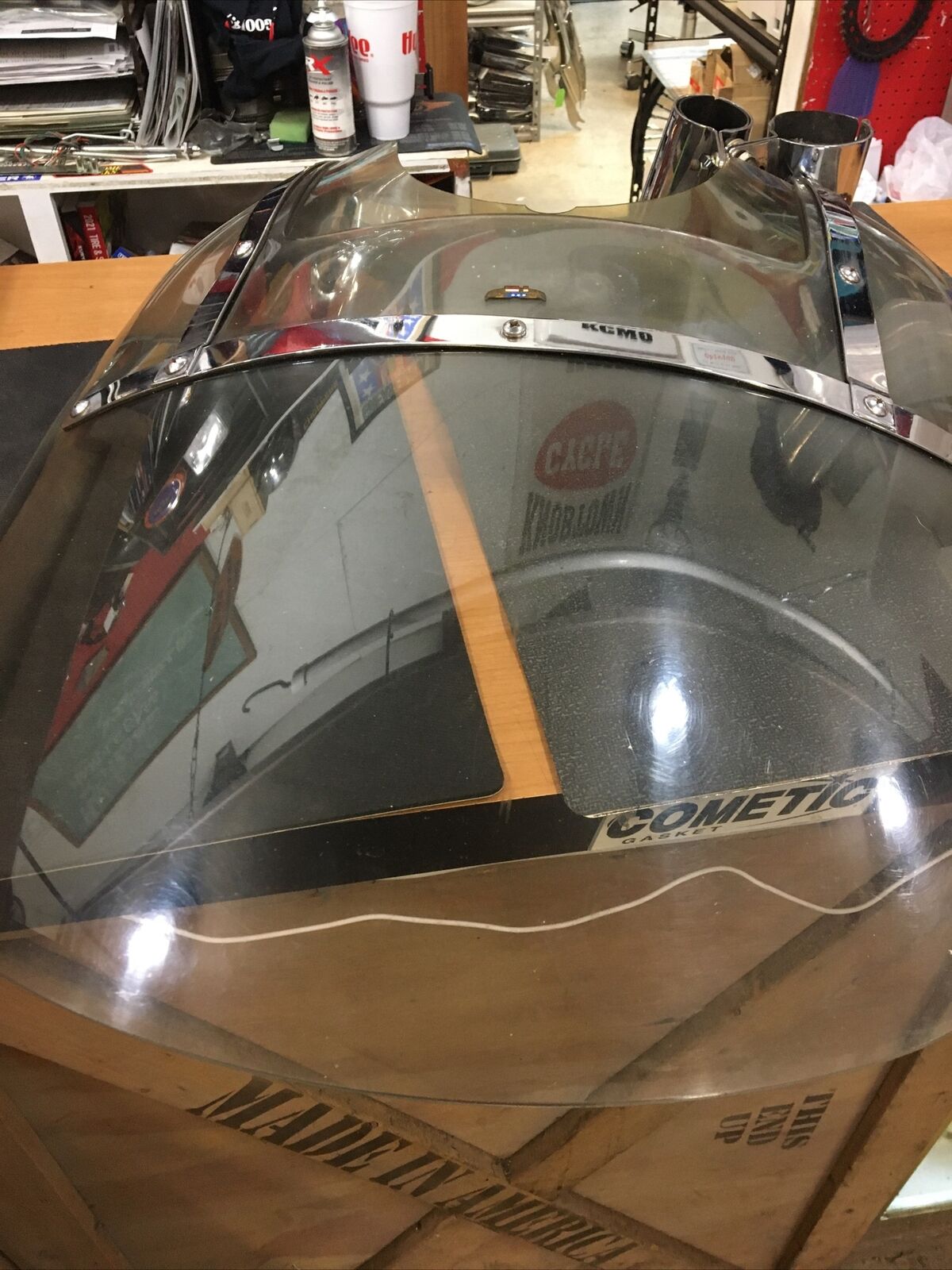 fits Harley Davidson Touring 21-1/2” has scratches and scuffs also a crack by the headlight cutout.width and 20” height from headlight cutout has 41mm mounting brackets for fork tubes 12” from bracket to bracket buyer is responsible for fitment and applications no returns