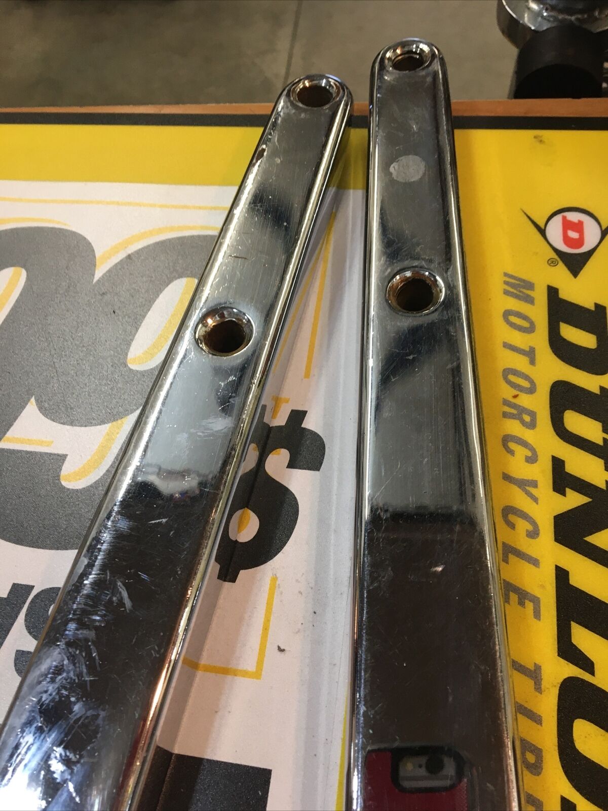 Rear Fender Struts For Harley Davidson #59932-58/59933-58. Condition is “Used”.there is rust and scratches and pitting replaces oem #59932-98/59933-58. Fits 73-78’ FX and 58-76’ FL models buyer is responsible for fitment and applications no returns