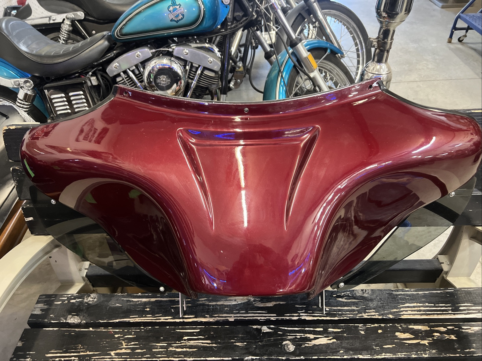 Reckless Motorcycles Batwing Fairing W/Stereo. Condition is used. Has some scratches and a couple paint chips. No windscreen, no hardware. Fits Harley Davidson FLHR models with OEM passing lamp bar. Has 4 Polk Audio speakers and Rockford Fosgate Stereo buyer is responsible for fitment and applications