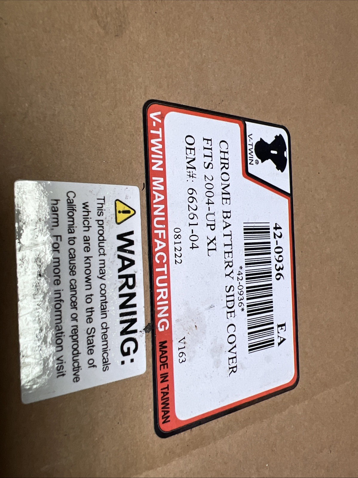 V-Twin Chrome Battery Side Cover #42-0936. Condition is new. Fits Harley Davidson 04-13’ XL models buyer is responsible for fitment and applications