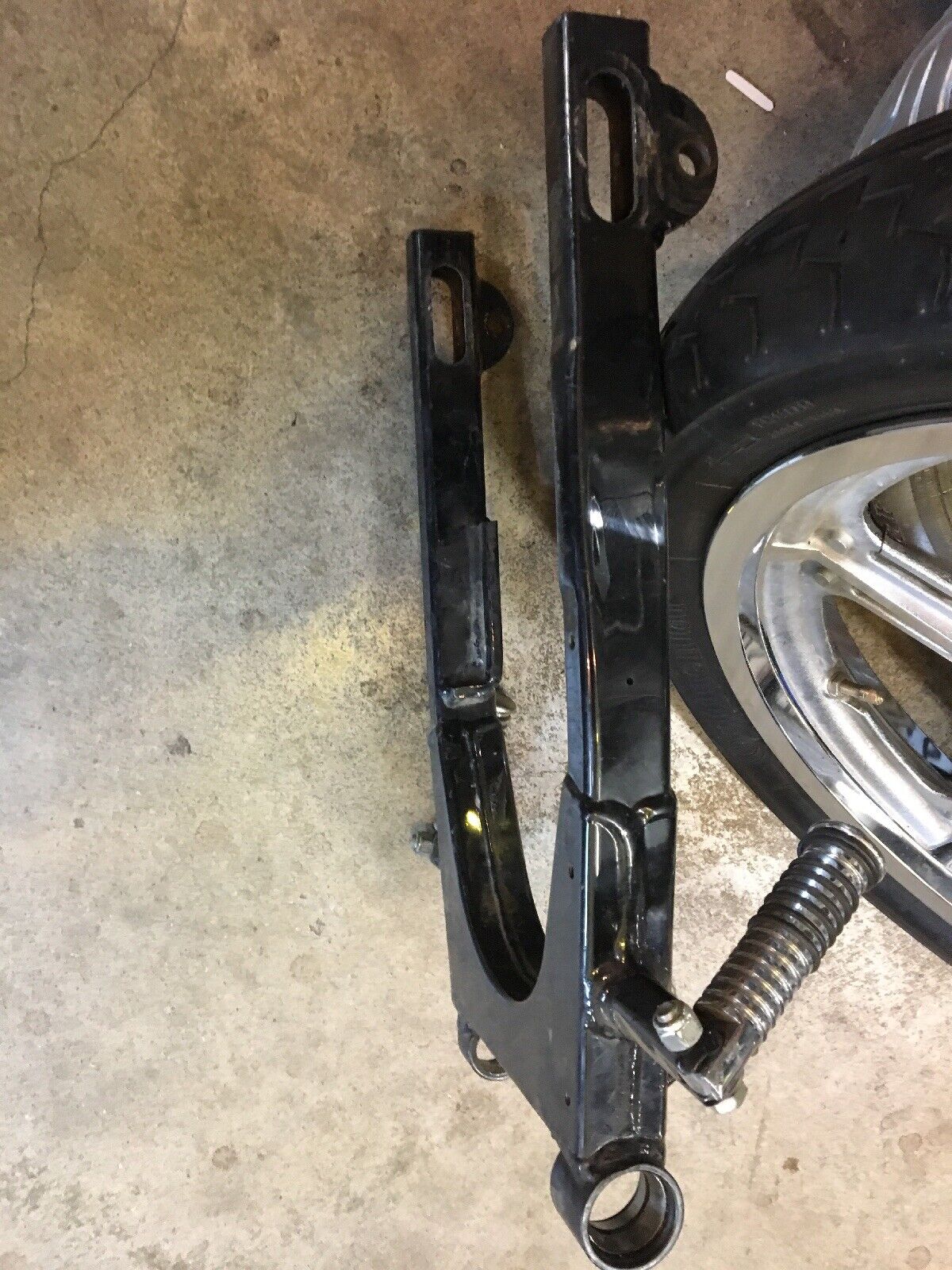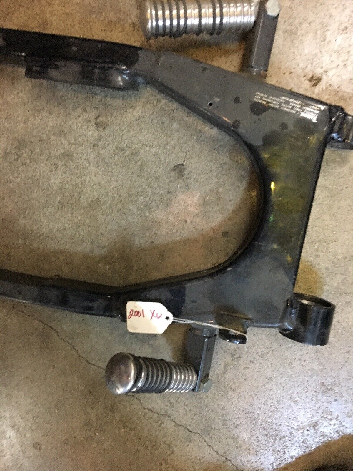 Used Harley Davidson oem rear swing arm #47587-00 has foot peg mounts and o-ring foot pegs fits 00-03’ XL models buyer is responsible for fitment and applications