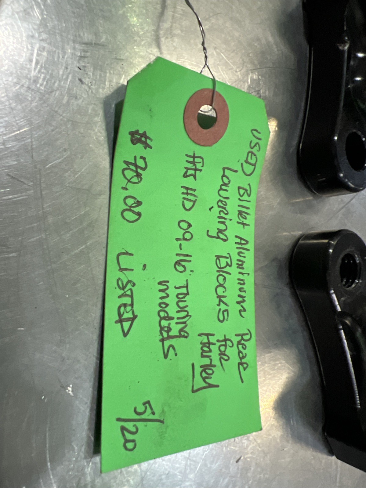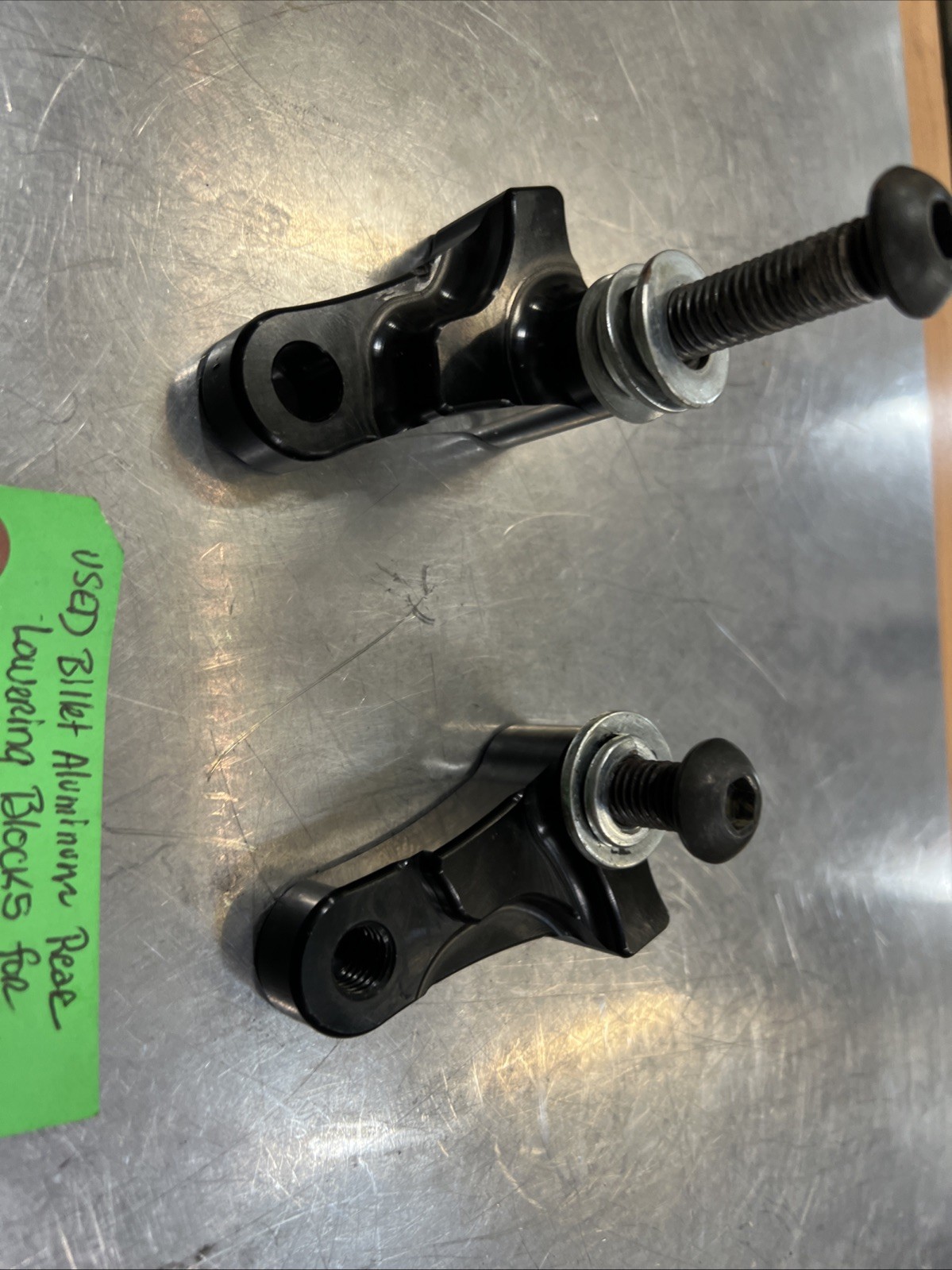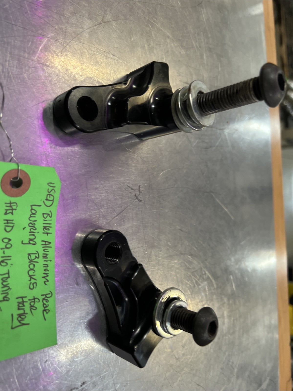 Billet Aluminum Rear Lowering Blocks for Harley. Condition is used. Fits Harley Davidson 09-16’ Touring models buyer is responsible for fitment and applications