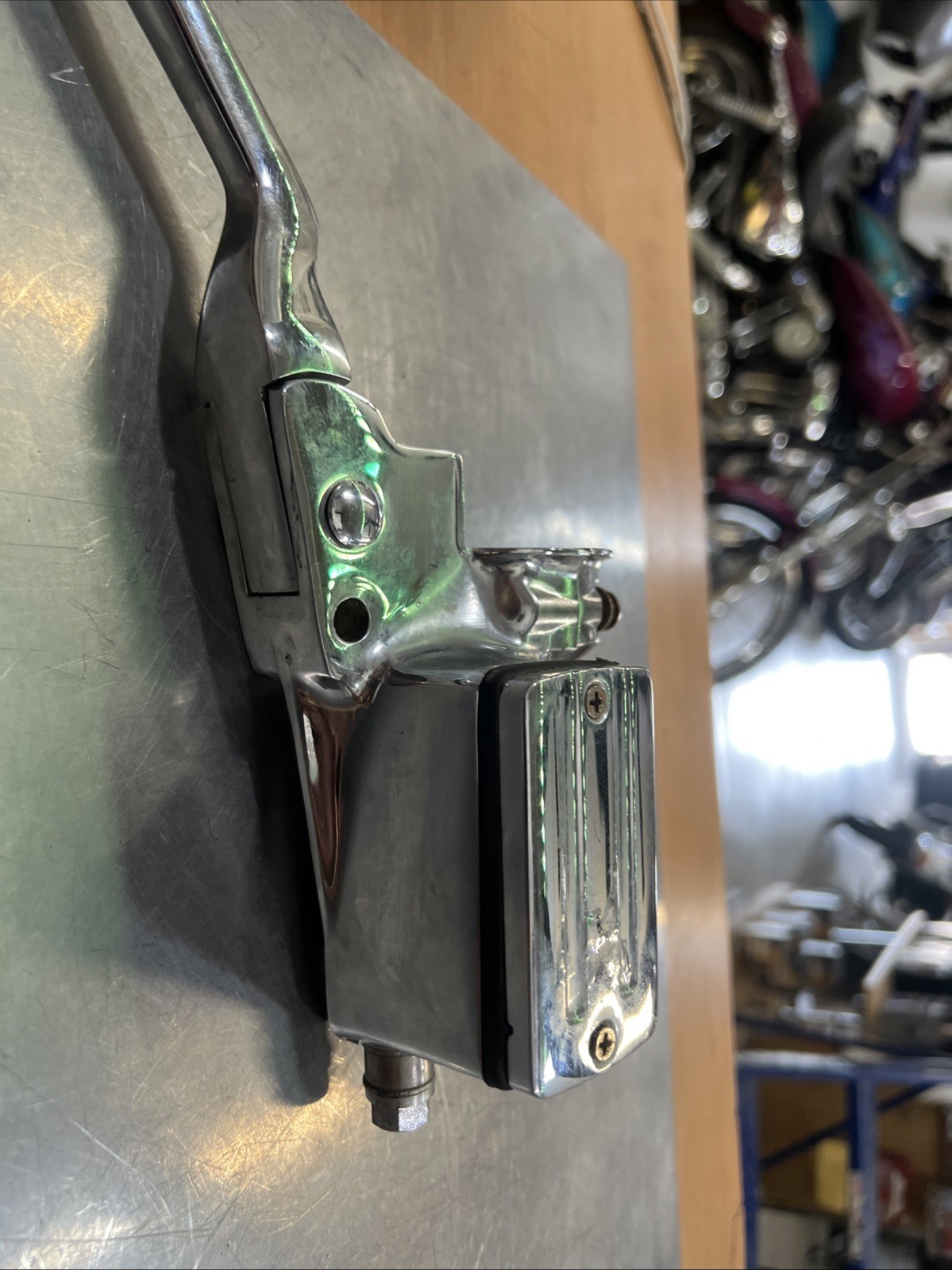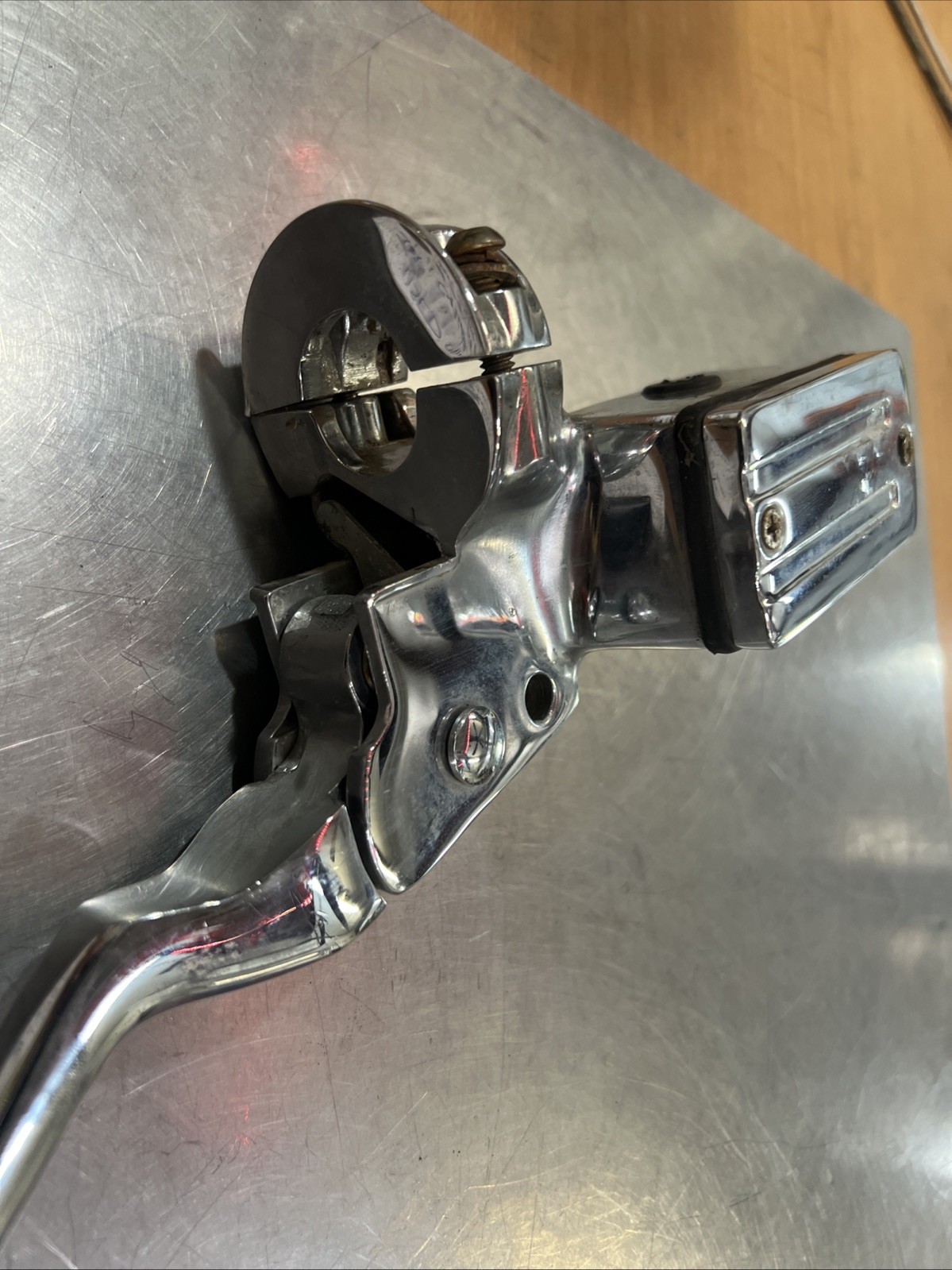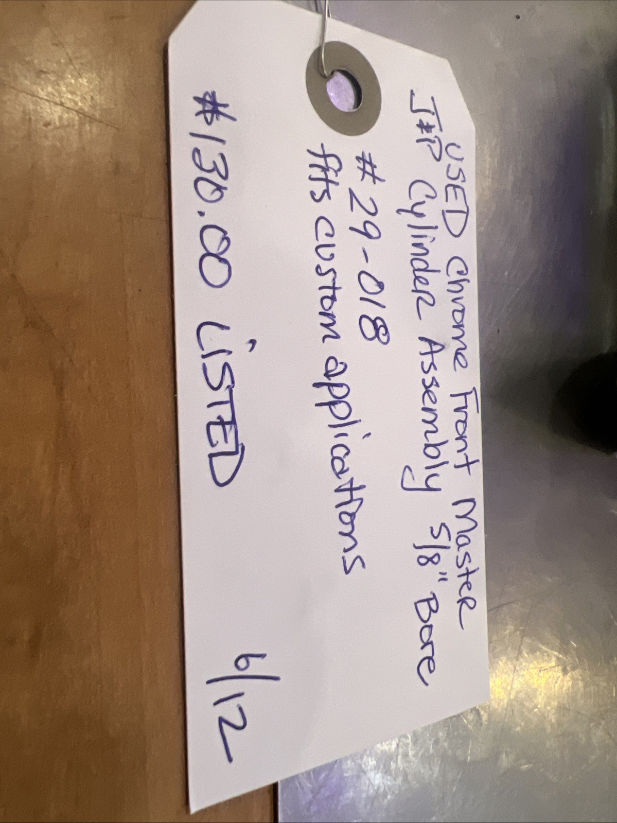 Chrome Front Master Cylinder Assembly 5/8” Bore #29-018. Condition is used. Fits Custom Applications buyer is responsible for fitment and applications