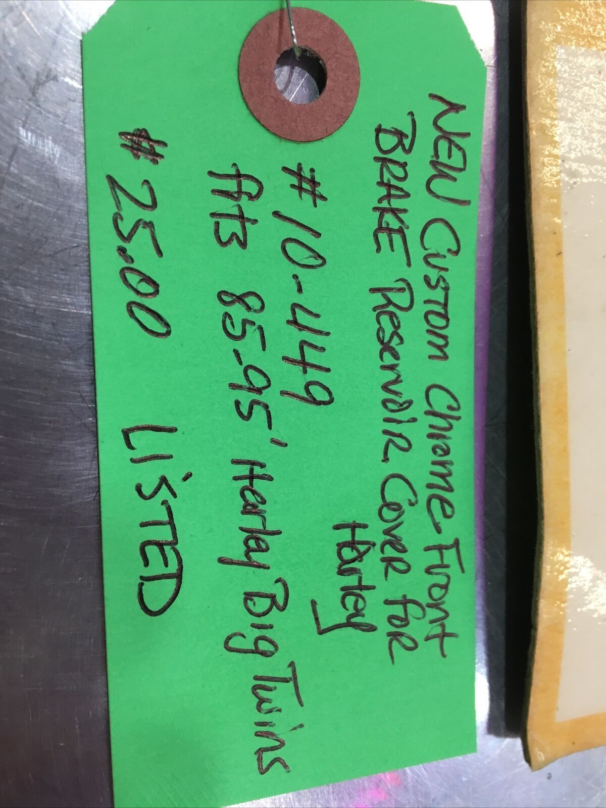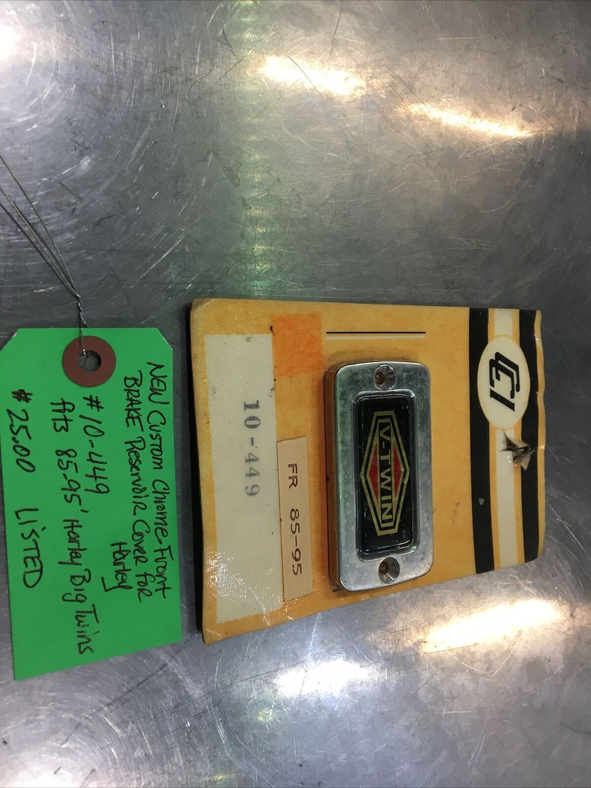Custom Chrome Front Brake Reservoir Cover For Harley #10-449. Condition is new. Fits Harley Davidson 85-95’ Big Twins buyer is responsible for fitment and applications