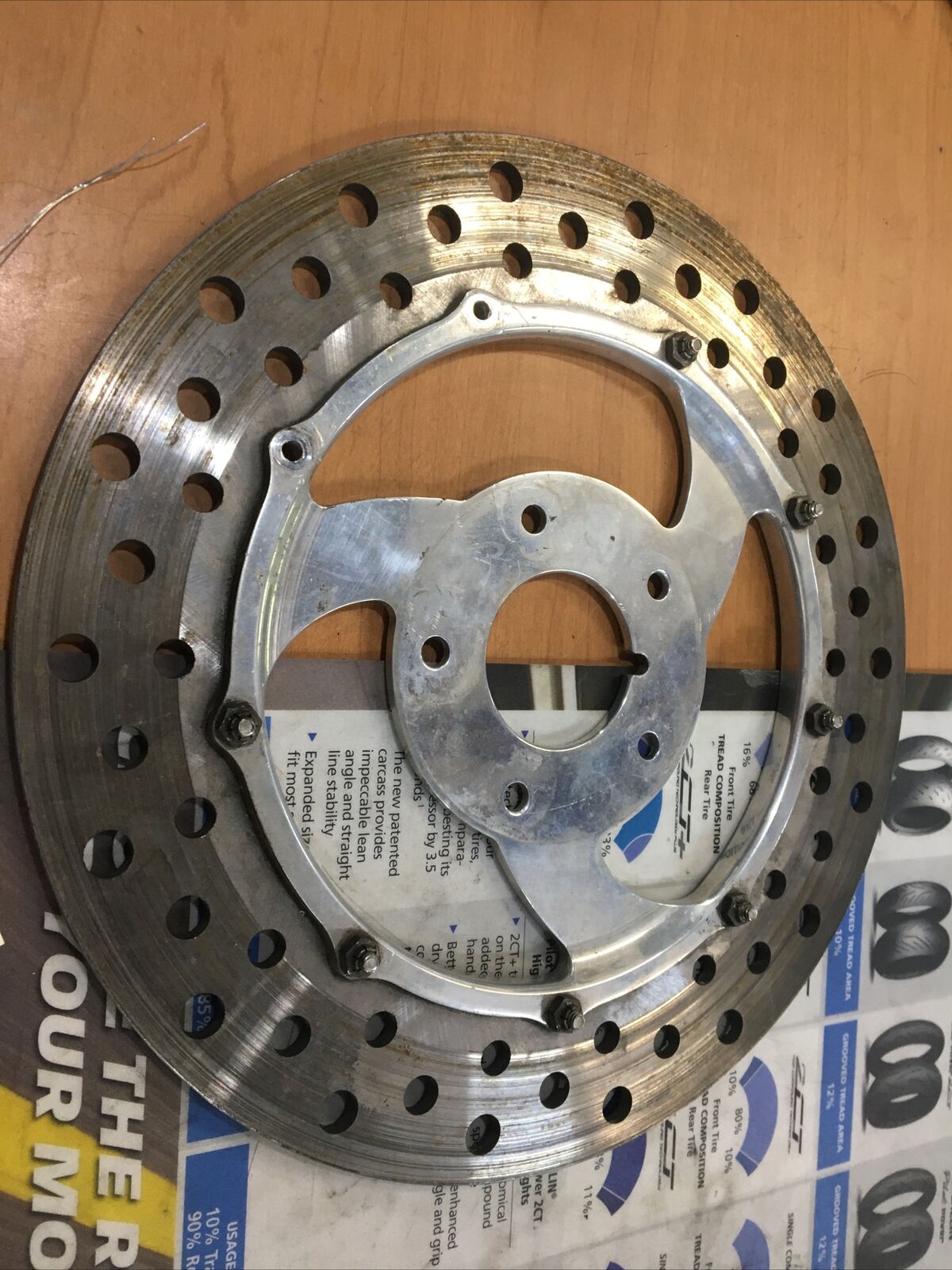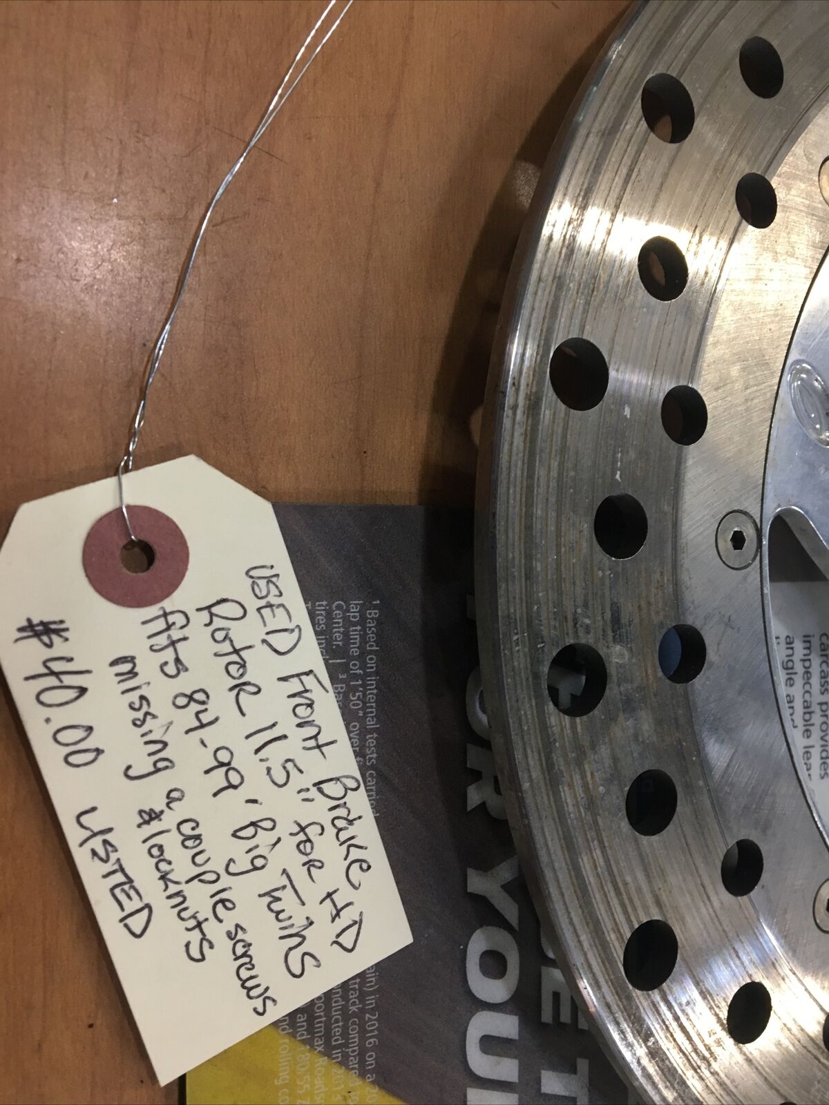 Front Brake Rotor 11.5” for Harley.Condition is used. Missing a couple screws and locknuts as seen in pictures. Fits Harley Davidson 84-99’ Big Twins buyer is responsible for fitment and applications