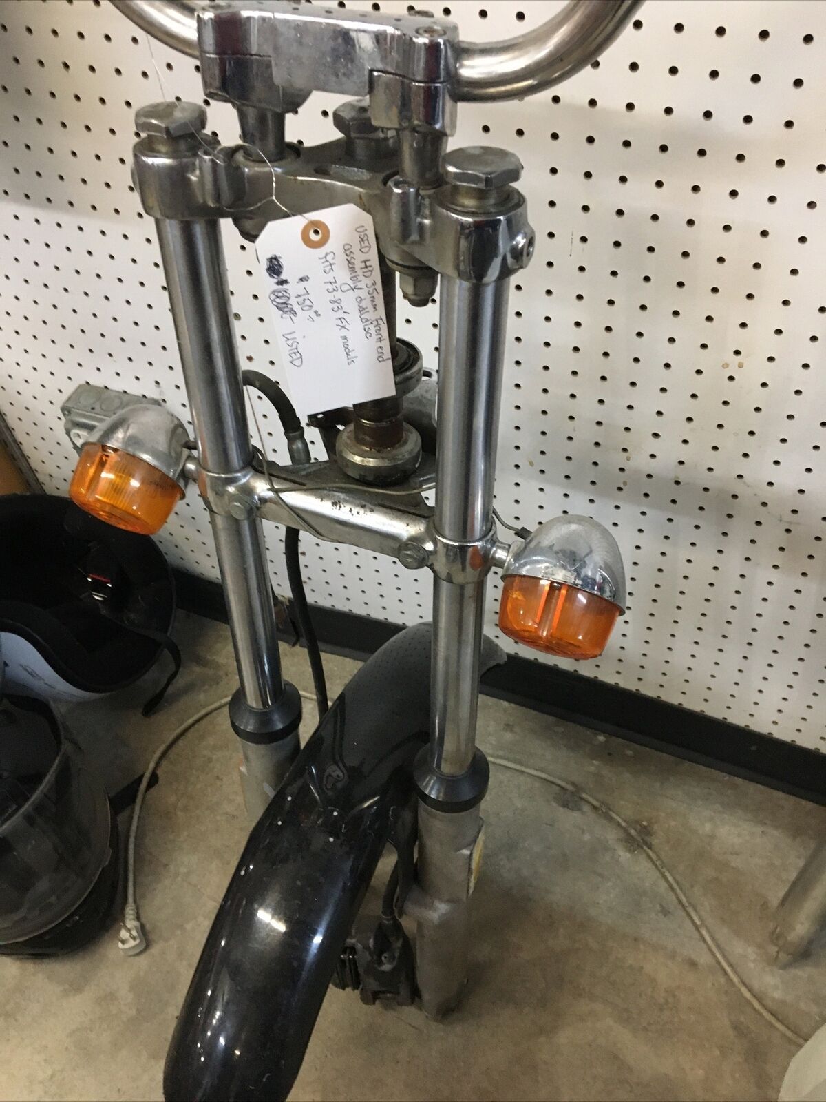 The Harley Davidson 35mm Front End Assembly Dual Disc is a true gem for motorcycle enthusiasts looking to upgrade their ride. This used assembly is designed to fit 1973-1983 FX models, offering a perfect blend of style and functionality.