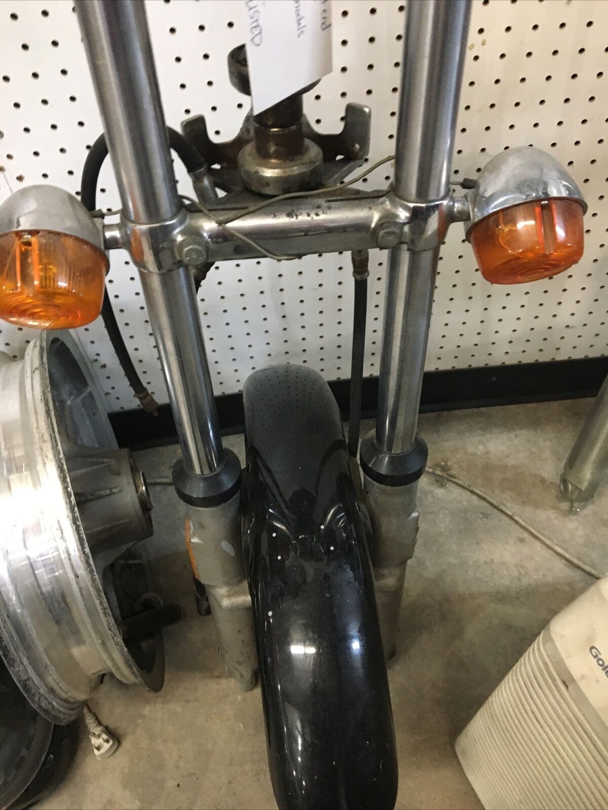 Harley Davidson front end assembly dual disc. Condition is used. Fits 73-83’ FX models buyer is responsible for fitment and applications comes with risers handlebars, turn signals front fender, dual disc lower legs and front calipers with brake line.