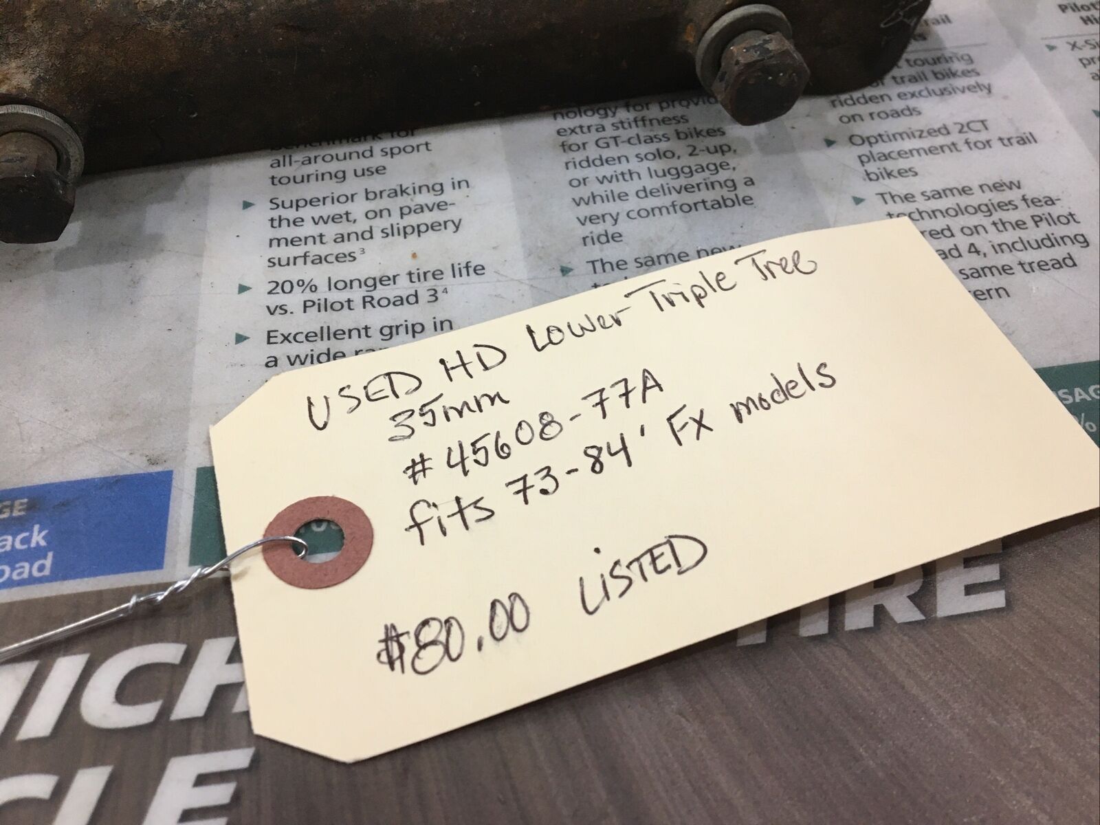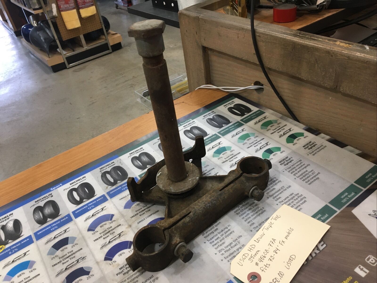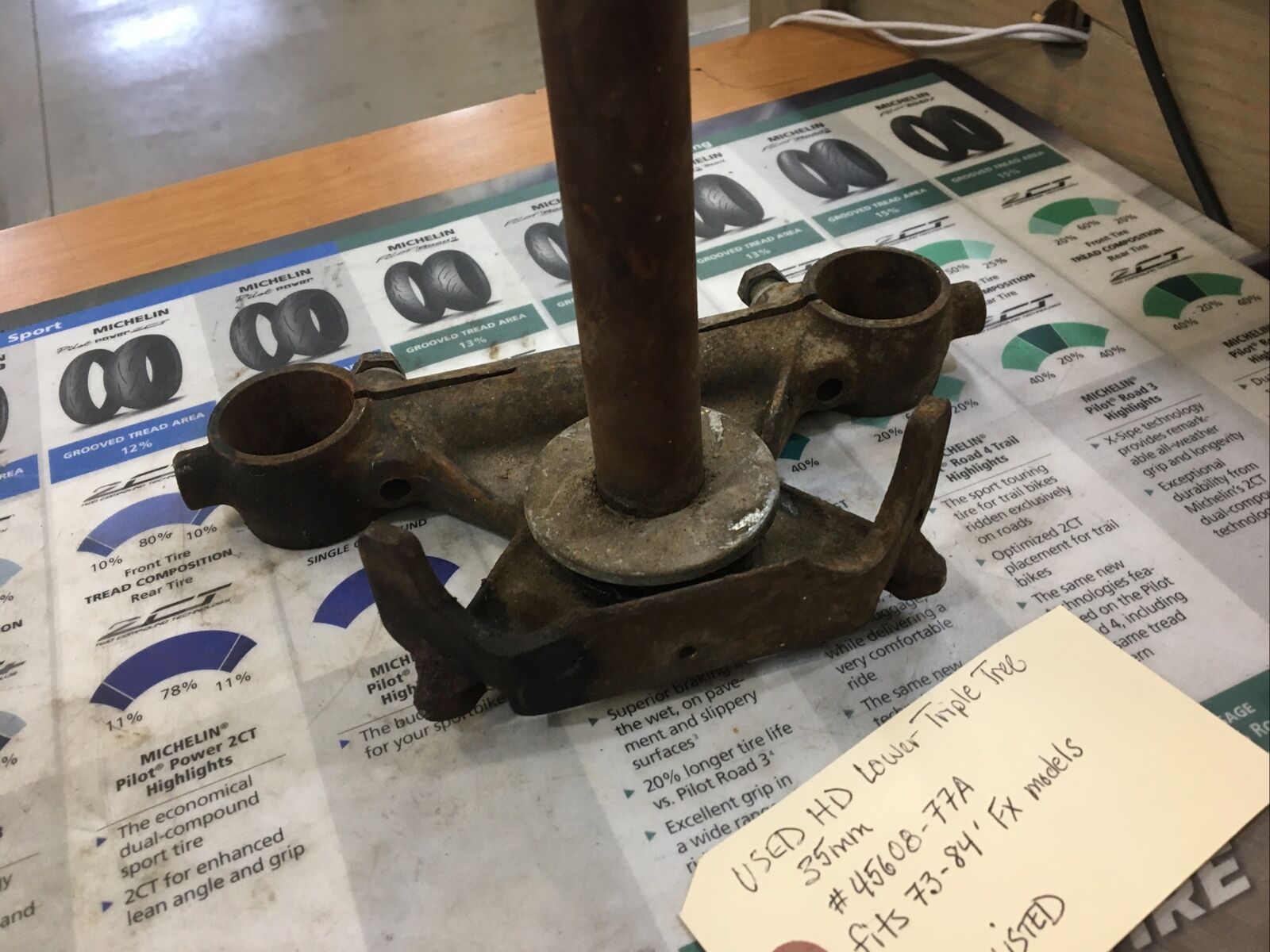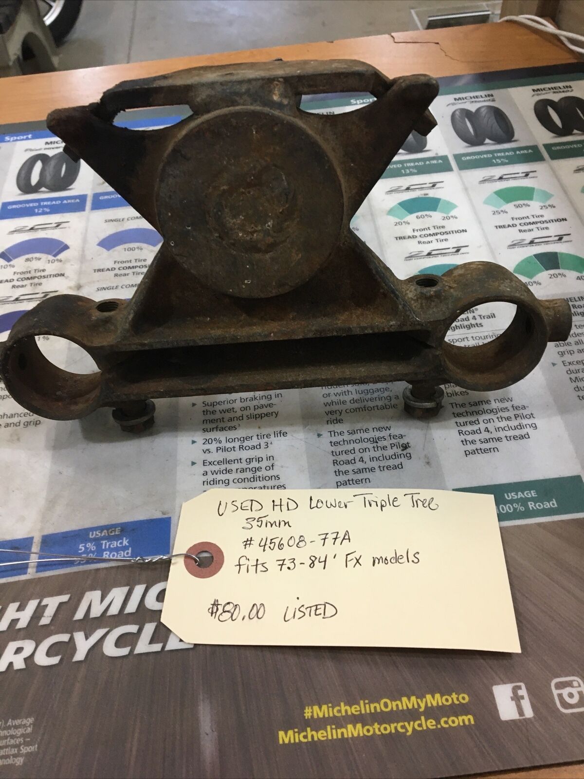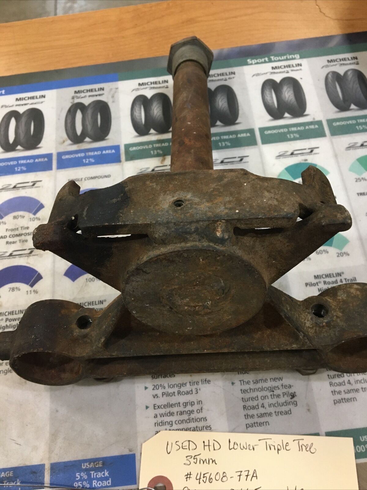 Harley Davidson Lower Triple Tree 35mm #45608-77A. Condition is used. Fits 73-84’ FX models buyer is responsible for fitment and applications
