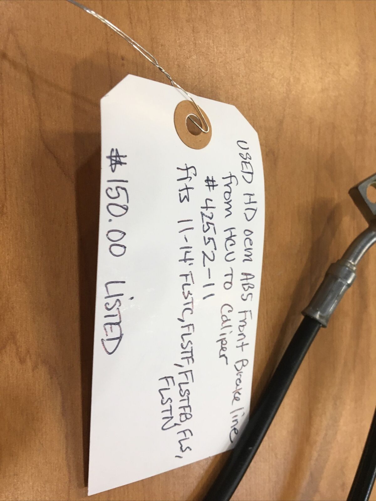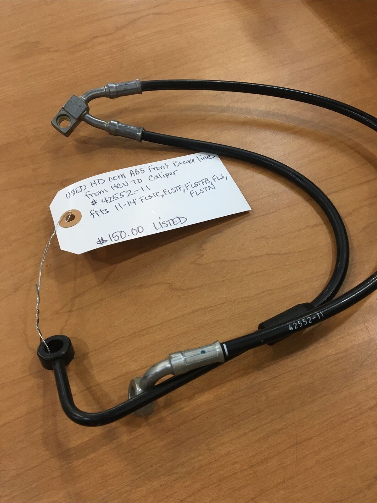 Harley Davidson Oem ABS Front Brake Line From HCU To Caliper #42552-11. Condition is used. Fits 11-14’ FLSTC, FLSTF, FLSTFB, FLS, FLSTN models with ABS buyer is responsible for fitment and applications