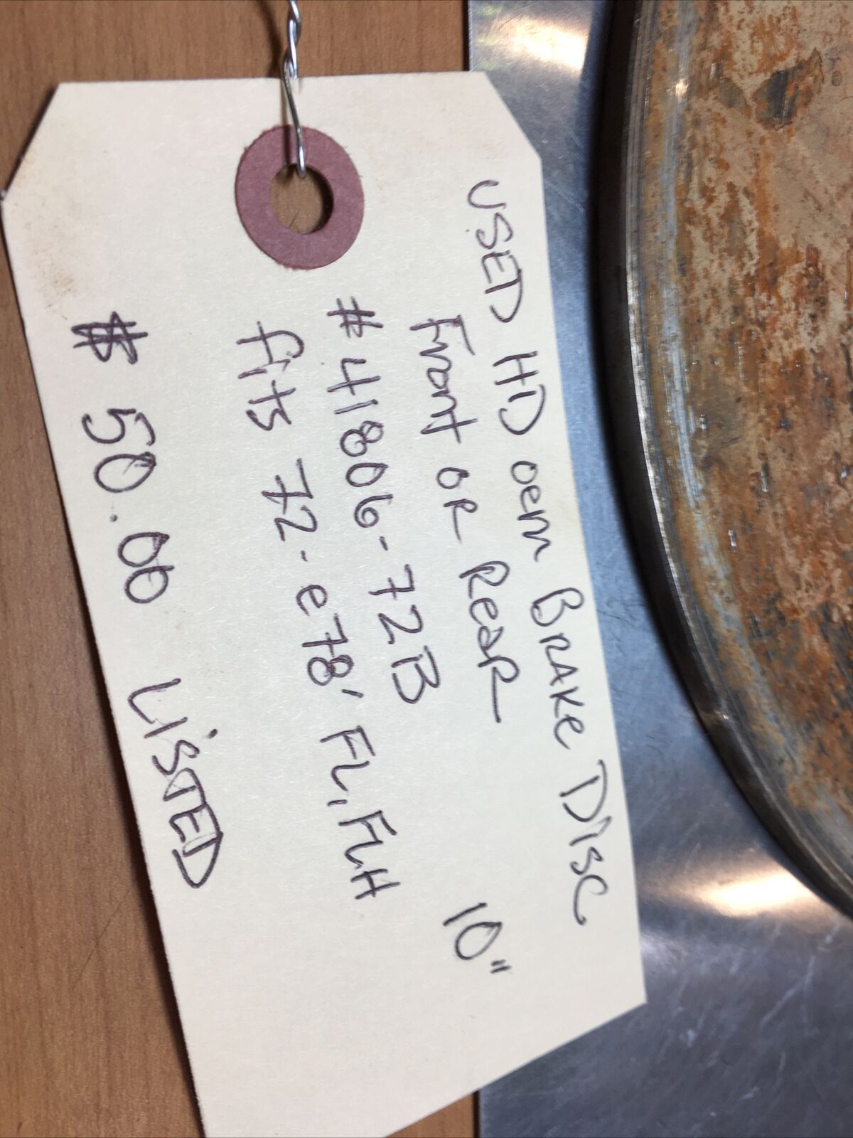 Harley Davidson oem Brake Disc Front or Rear #41806-72B. Condition is used. 10” fits 72-e78’ FL, FLH models buyer is responsible for fitment and applications