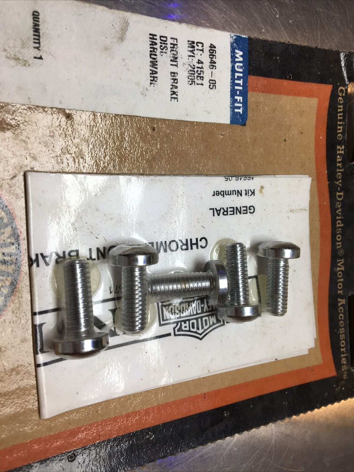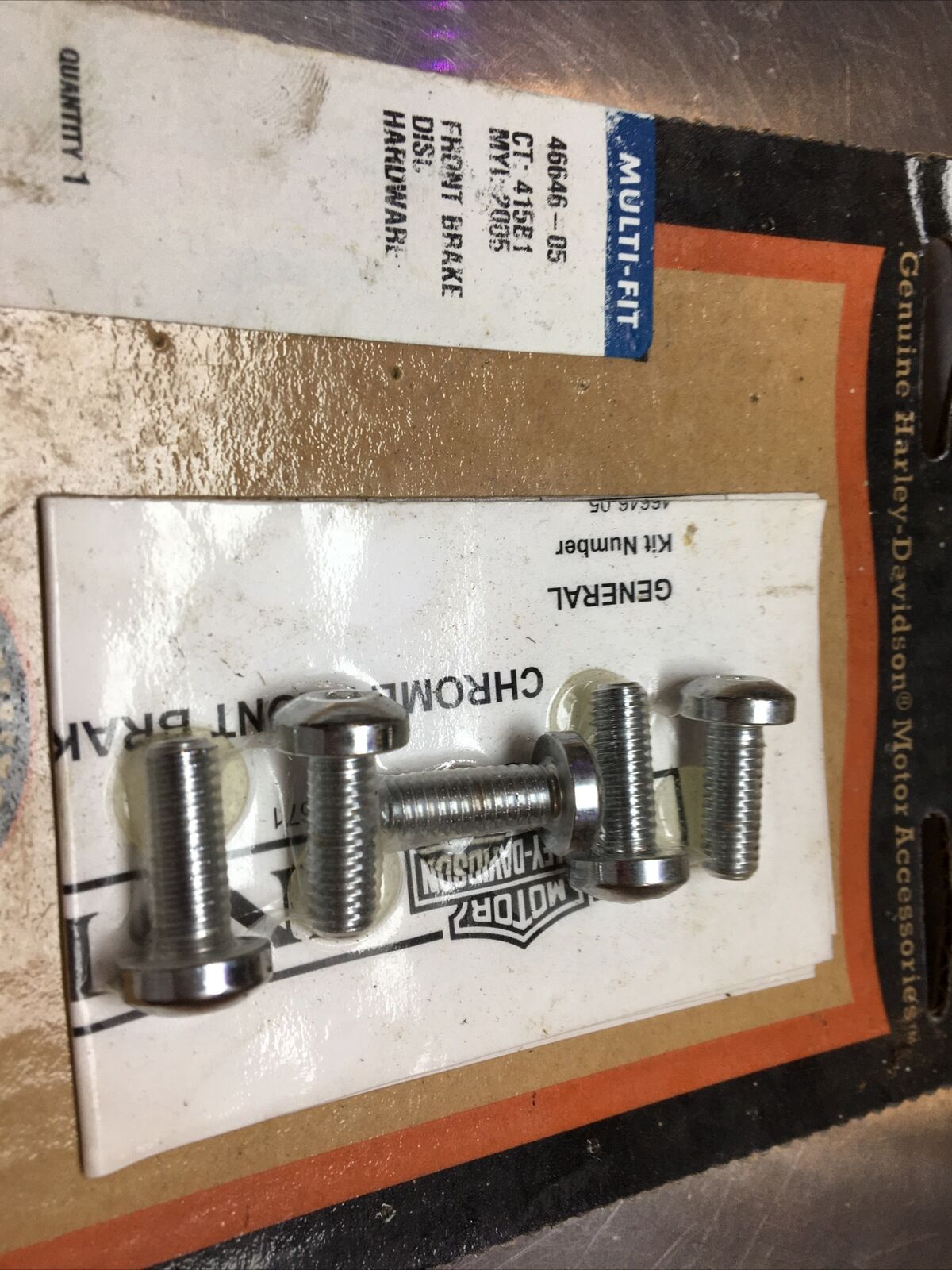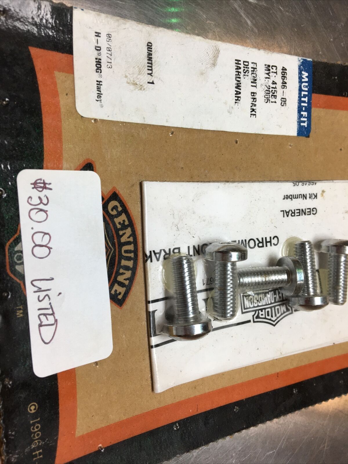 Harley Davidson oem Chrome Front Brake Disc Hardware #46646-05. Condition is new. Fits 90’-later Big Twins buyer is responsible for fitment and applications