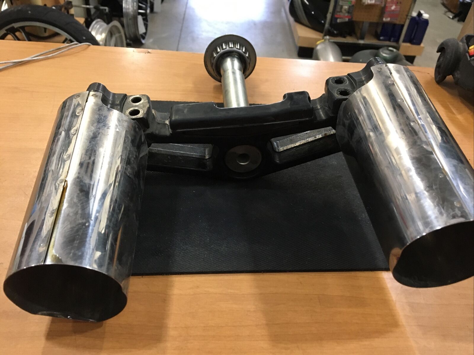 Harley Davidson OEM fork stem and lower tree with bent up cowbells #45446-09.
